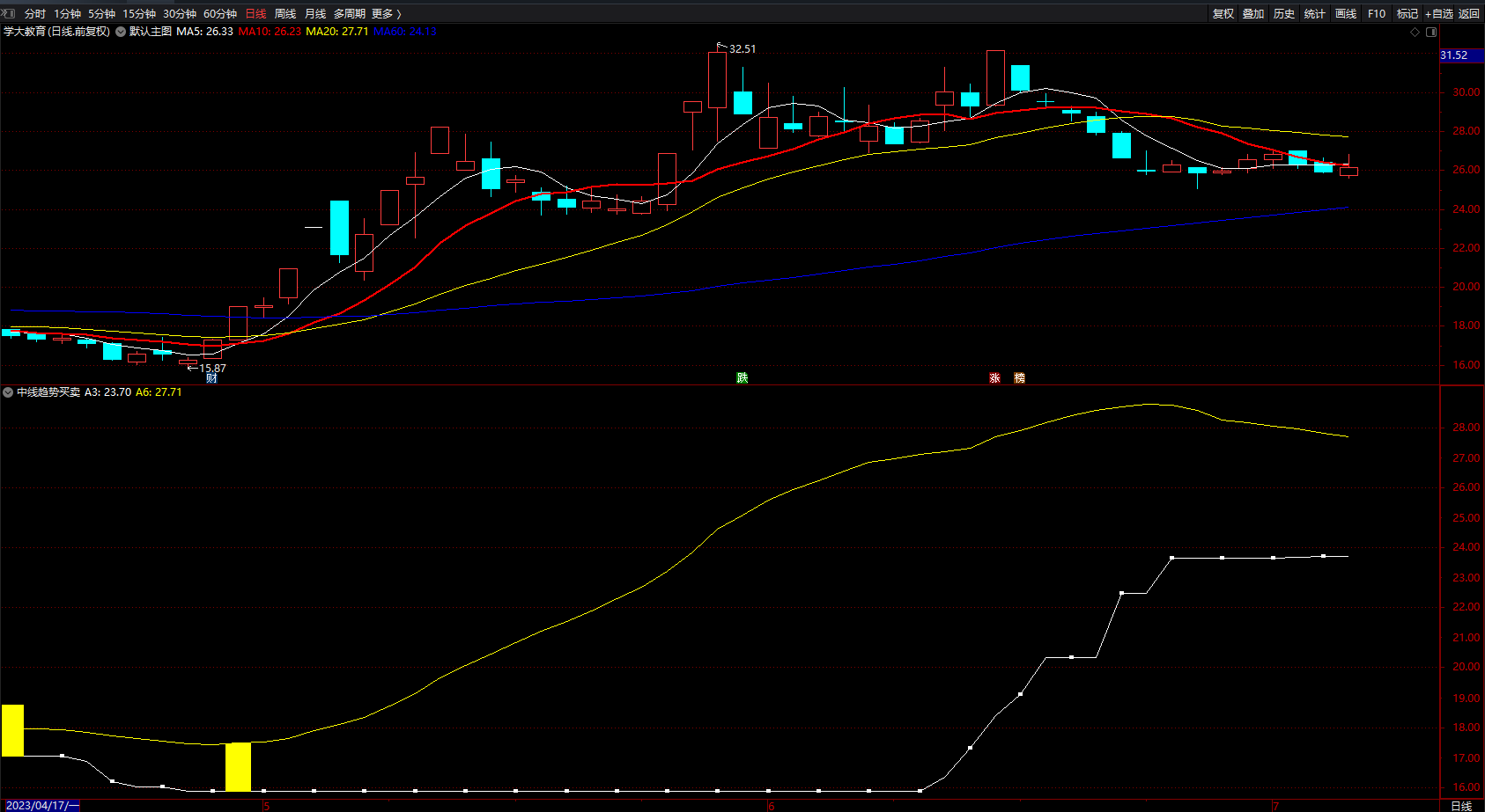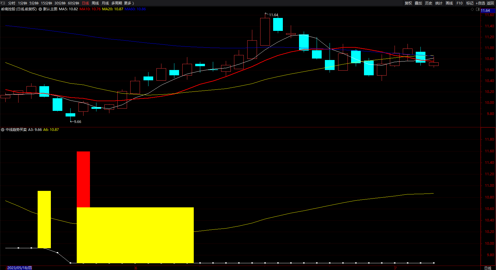 中线趋势买卖指标公式 通达信底部柱状信号预测 副图 无未来 源码