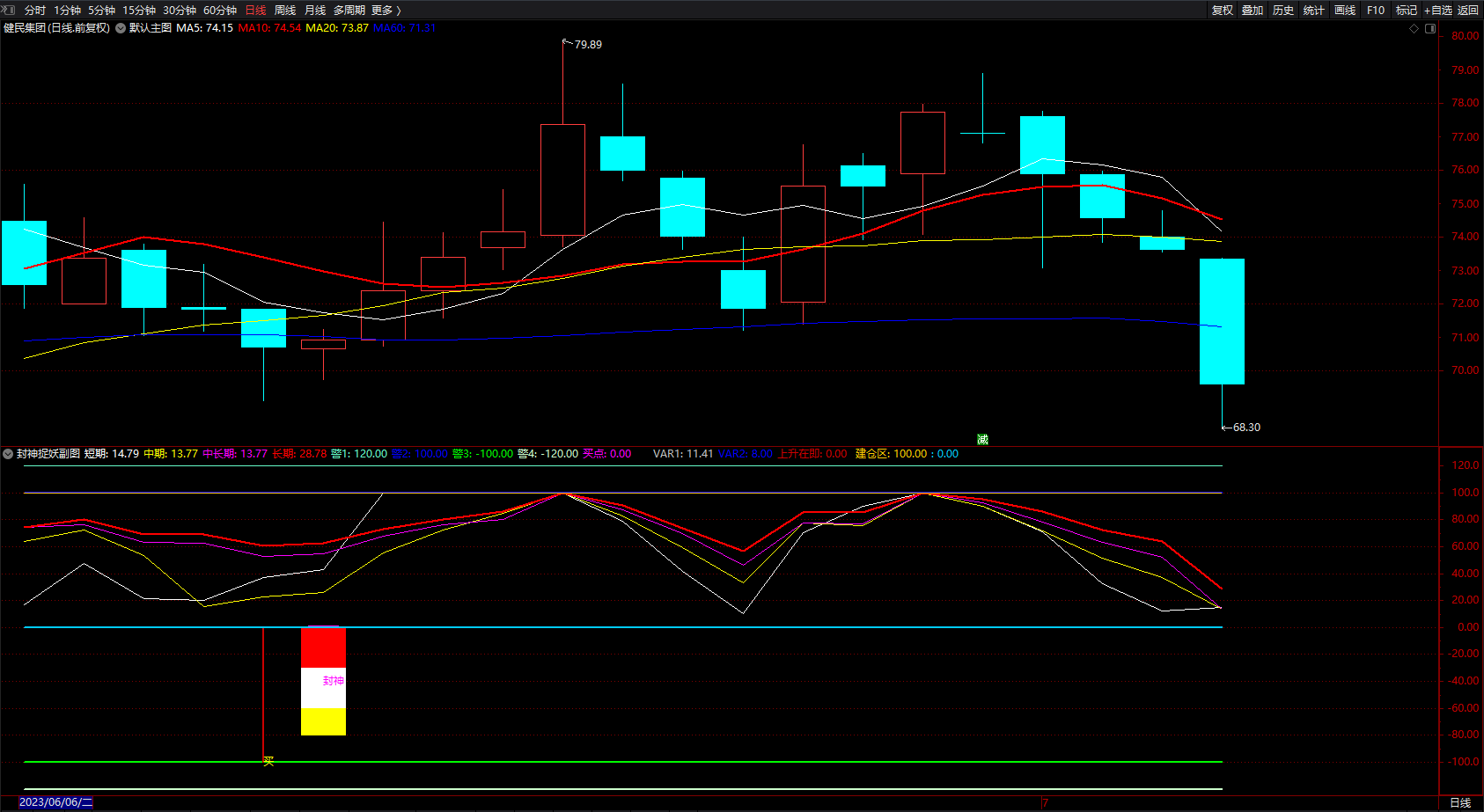 (擒牛捉妖股专用指标 通达信集合了抄底建仓追涨指标公式 副图 无未来 源码 )