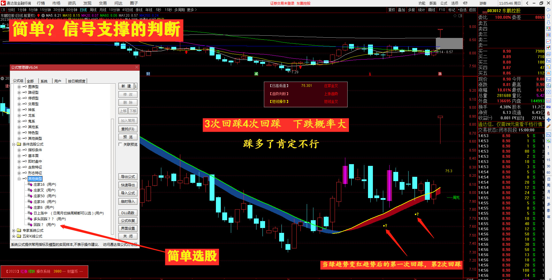 通信达【游资分时主图】指标1主图2幅图分时主图抓涨停指标