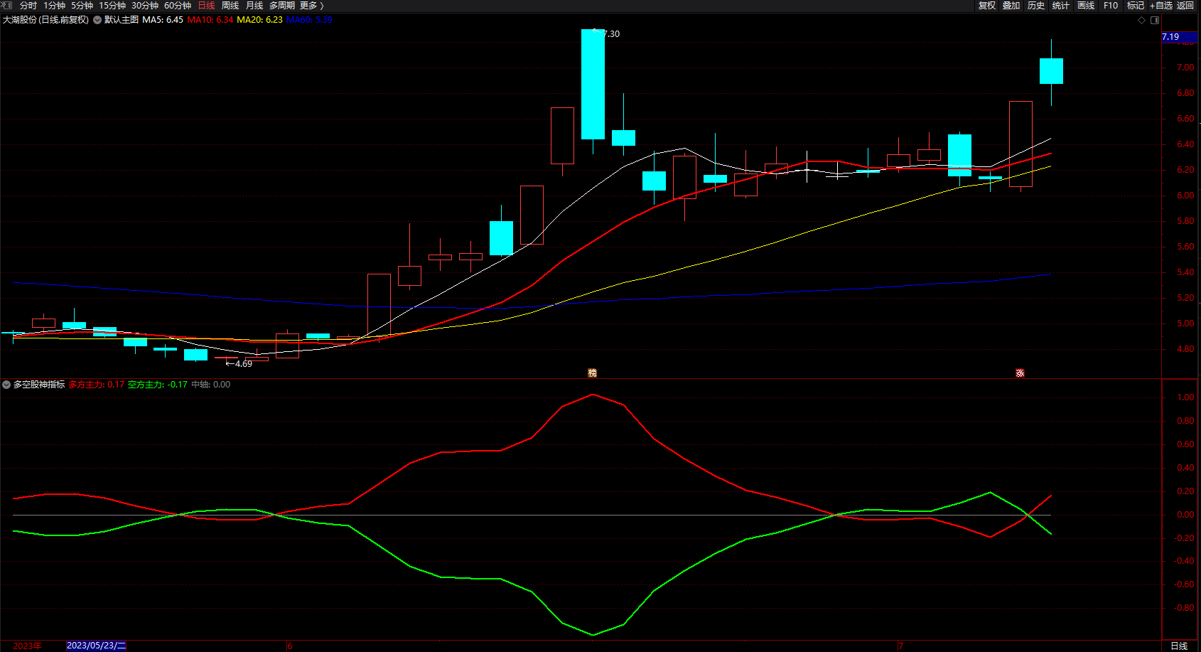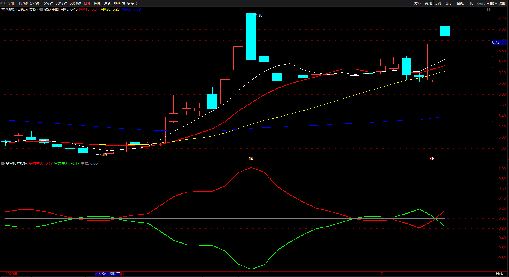 多空股神指标 通达信中短趋势线指标公式 副图 源码