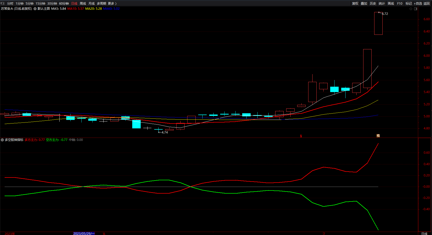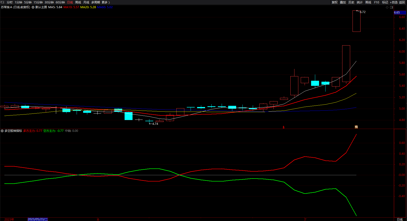 (多空股神指标 通达信中短趋势线指标公式 副图 无未来 源码 )