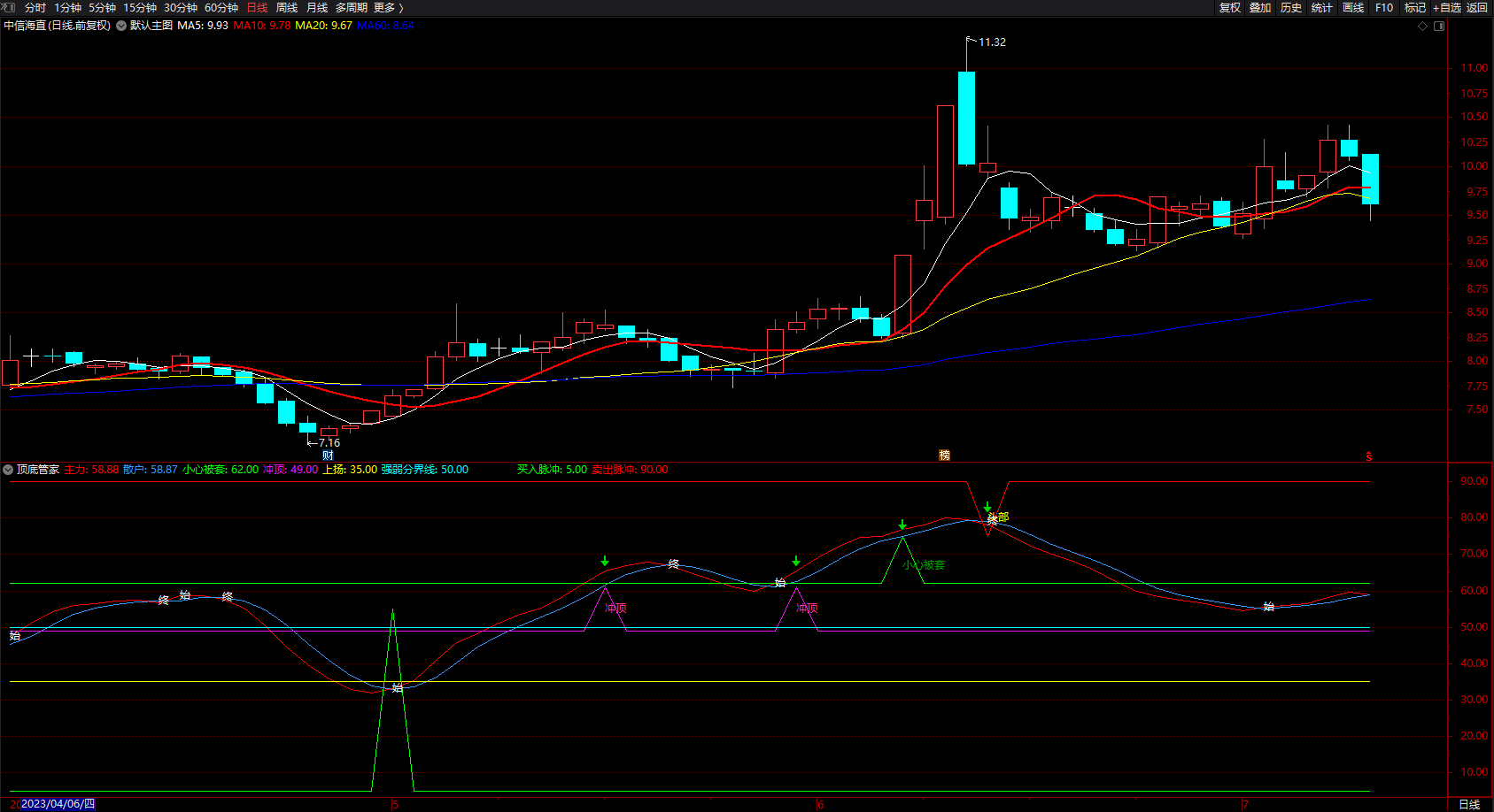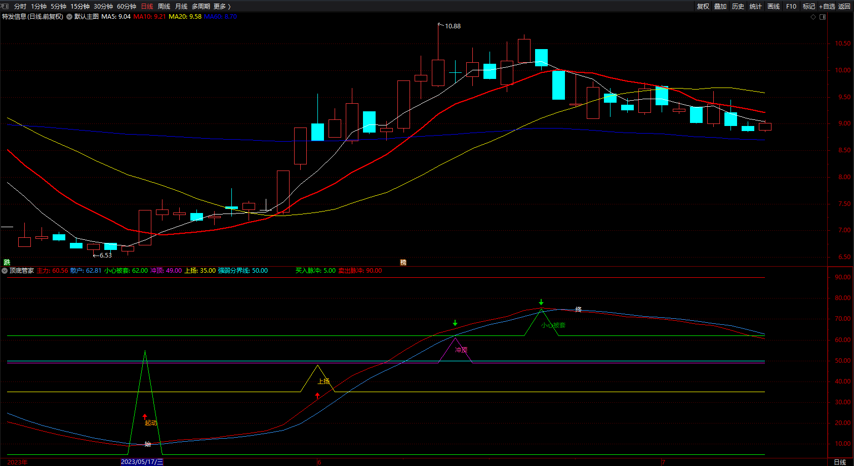 (强弱分界线 通达信顶底管家趋势买卖点指标公式 副图 源码 )