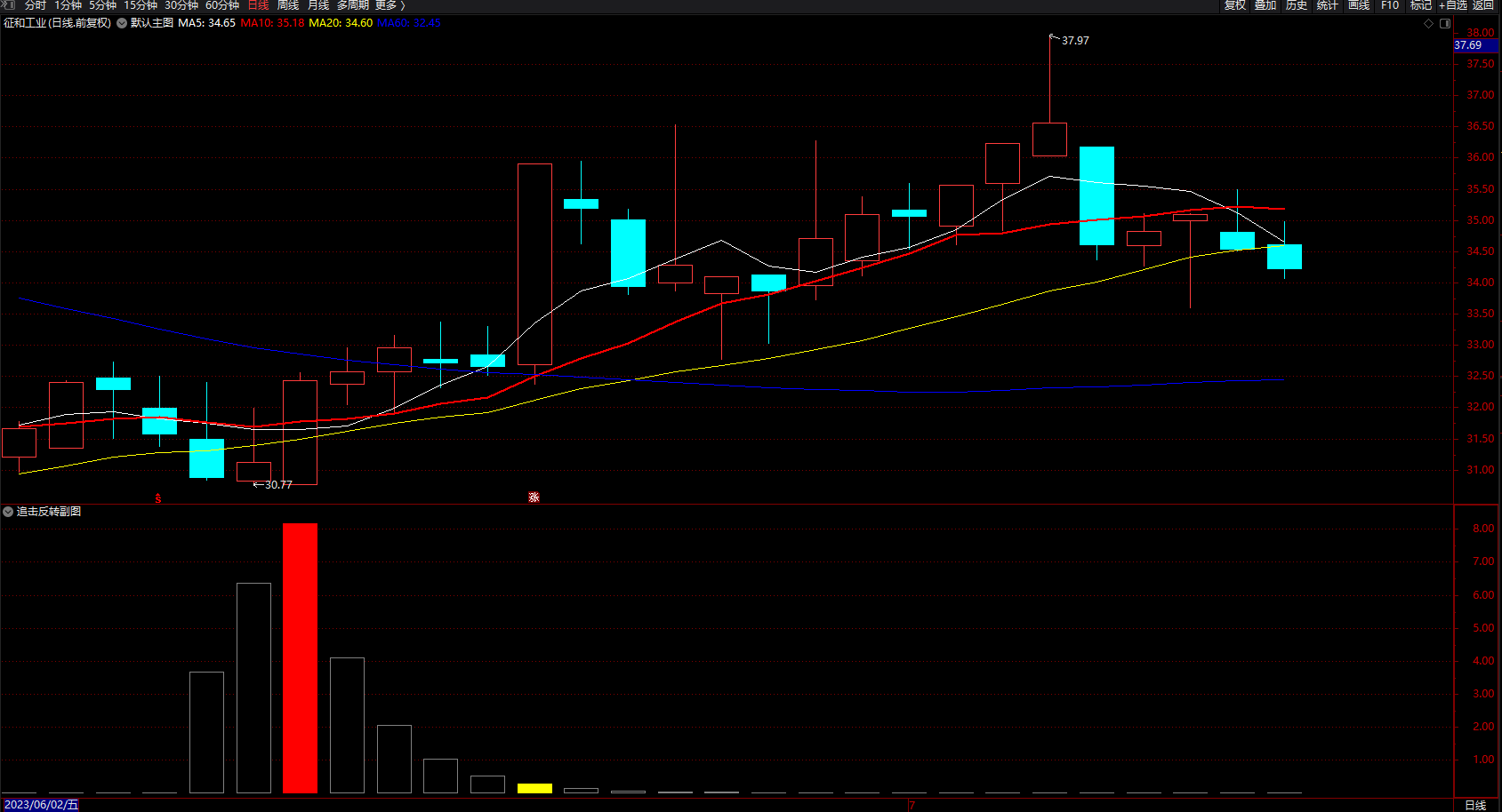 追击反转 通达信量柱买卖副图指标公式 无未来 源码