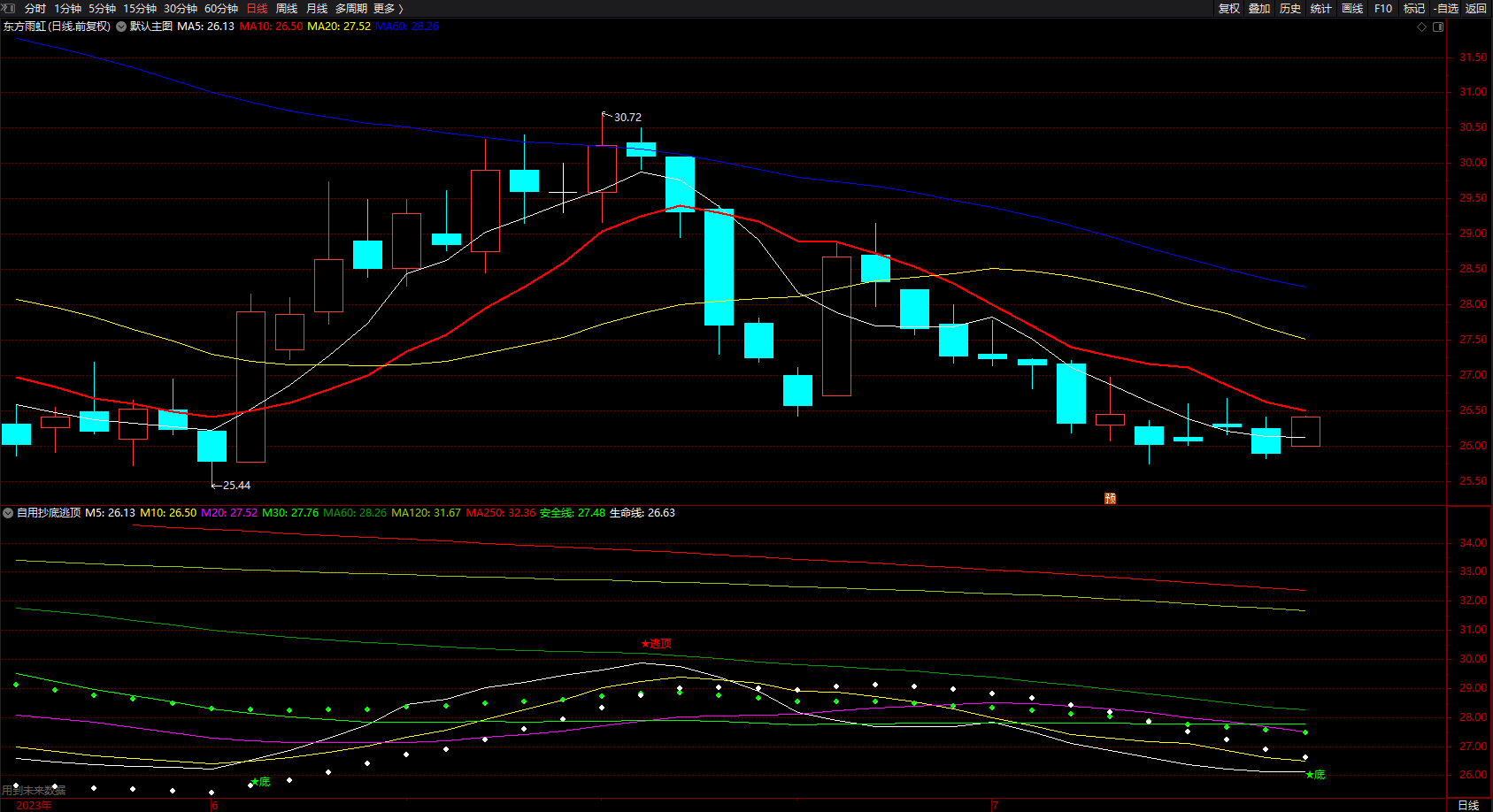生命线: FORCAST(CLOSE,30), CIRCLEDOT,colorwhite;