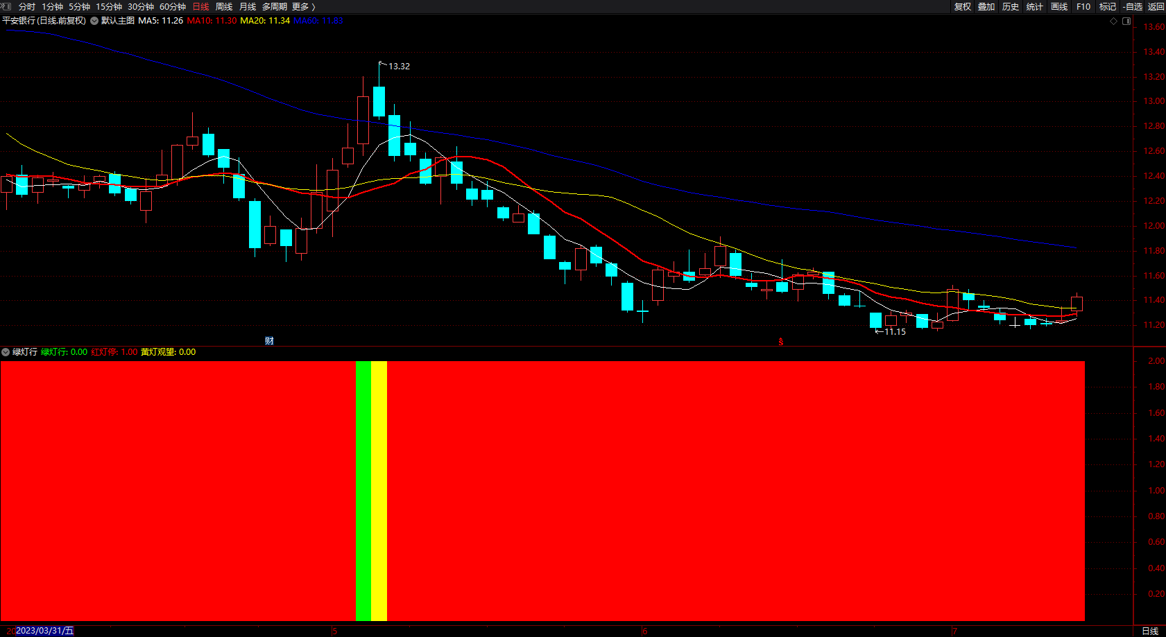 黄灯观望:A>=C AND C>=B,coloryellow;
