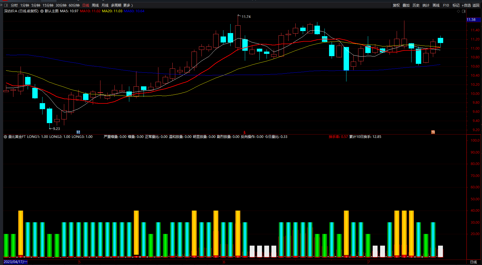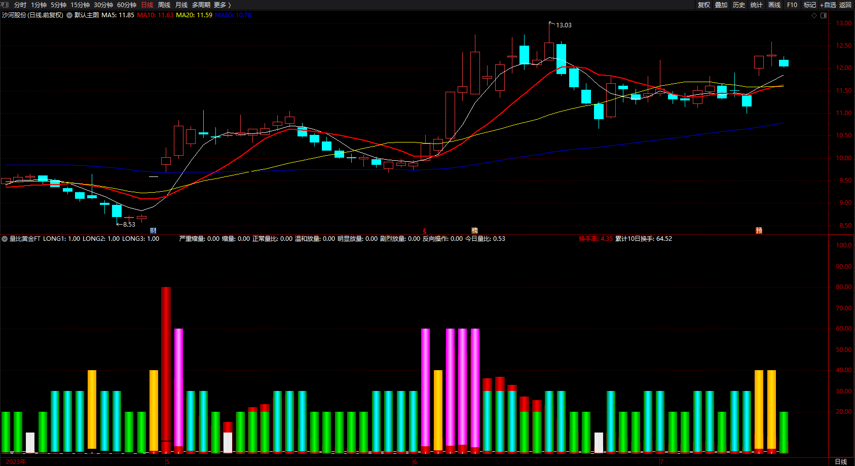 换手率:HSL,COLORRED,NODRAW;