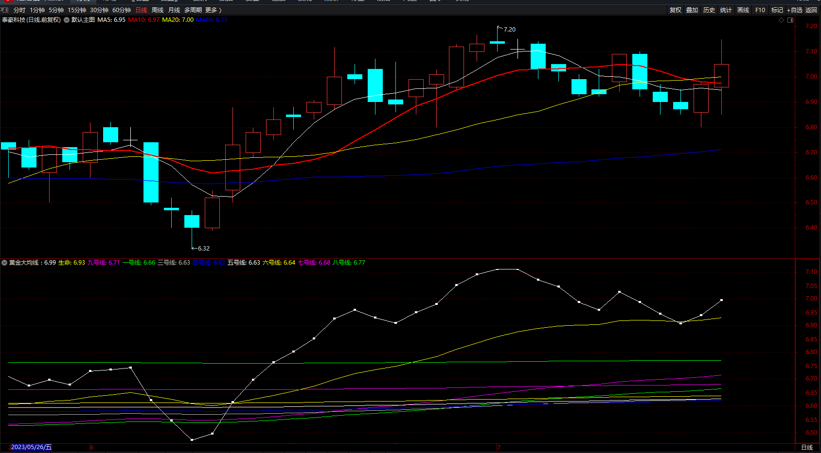 黄金大均线 通达信趋势线波段顶底指标公式 副图 无未来 源码