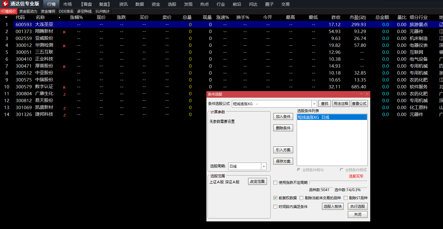短线追涨指标上涨趋势买入选股指标公式 通达信 副图 无未来 源码