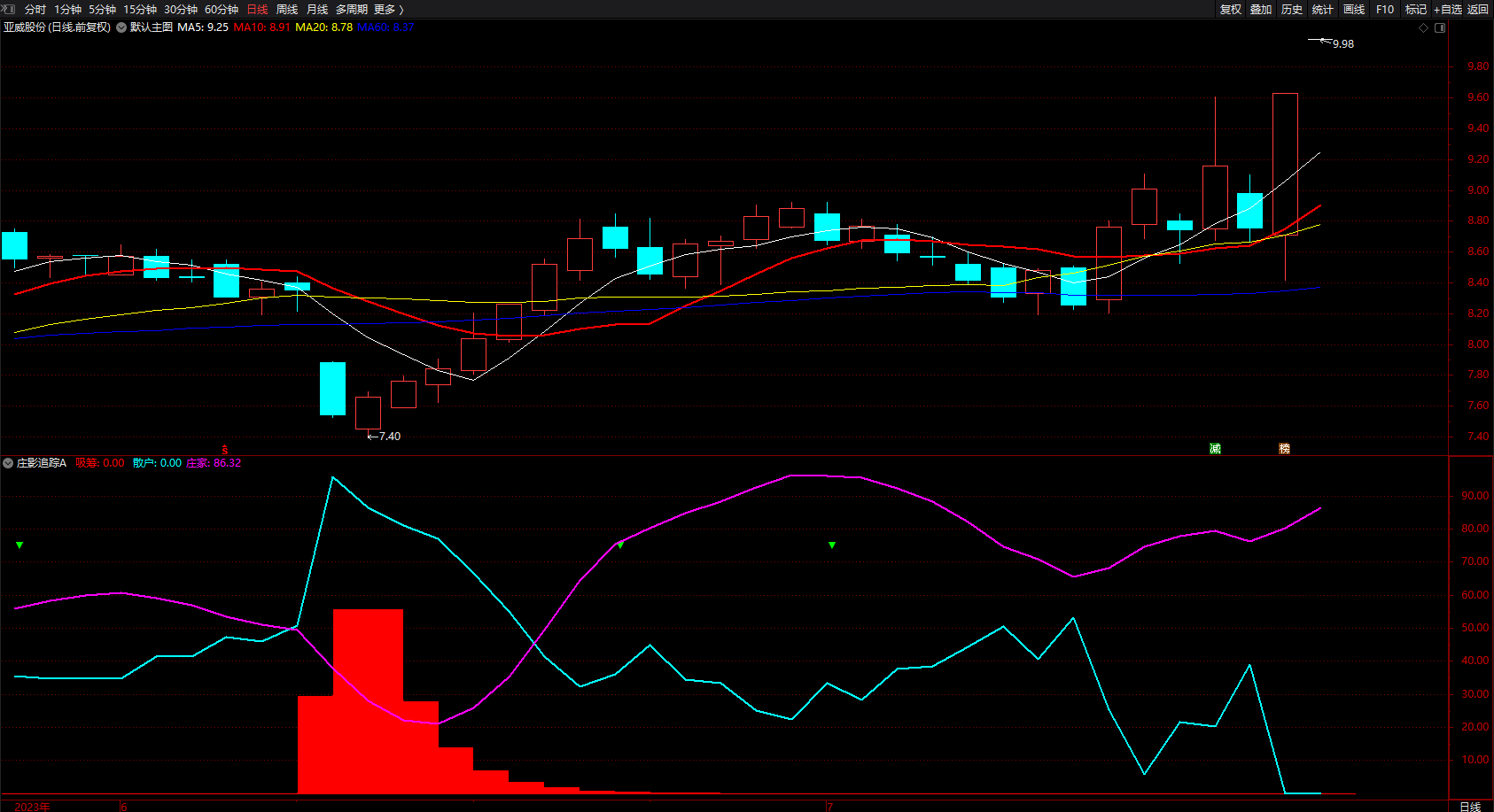 通达信〖AI量化分时〗主副图分时指标,捕捉股票在分时图上的强势启动信号,源码