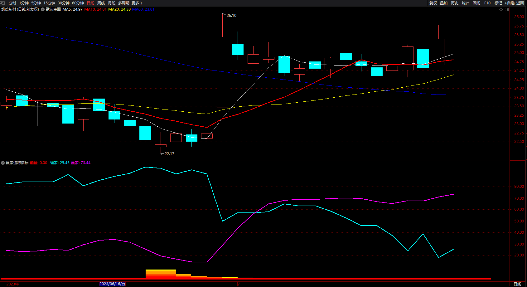 指标类工具,仅供投资者参考,使用时请结合其他技术指标、成交量、大盘走势等多因素进行综合判断。