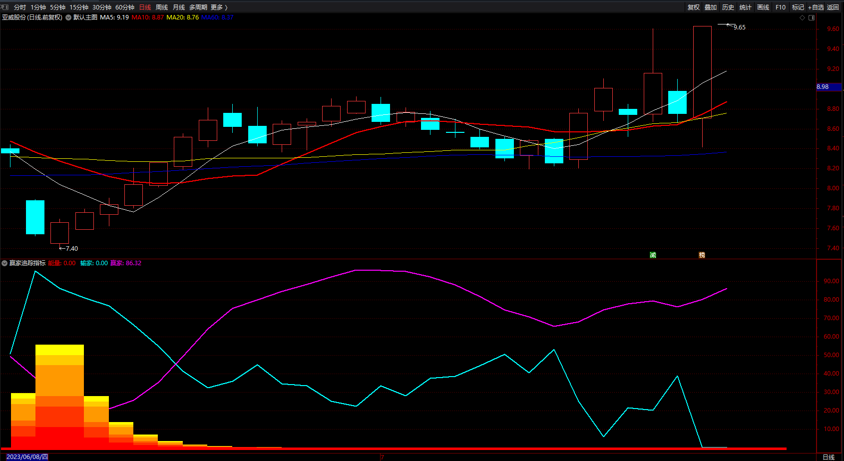 赢家追踪 通达信股票能量指标抓牛股买卖点指标公式 副图 无未来 源码
