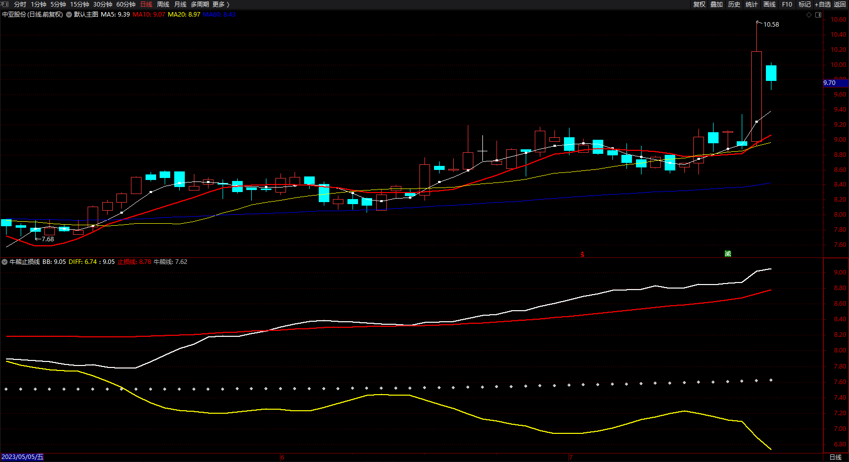 强势宰牛 通达信牛熊止损线提示买卖点指标公式 副图 源码