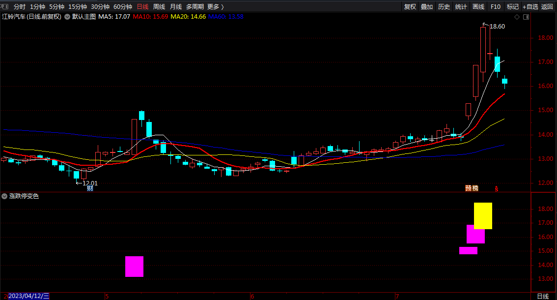 涨跌停变色,可以很快的看出哪一天股票是涨停、跌停或者大涨。