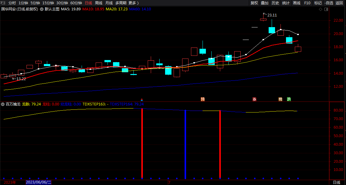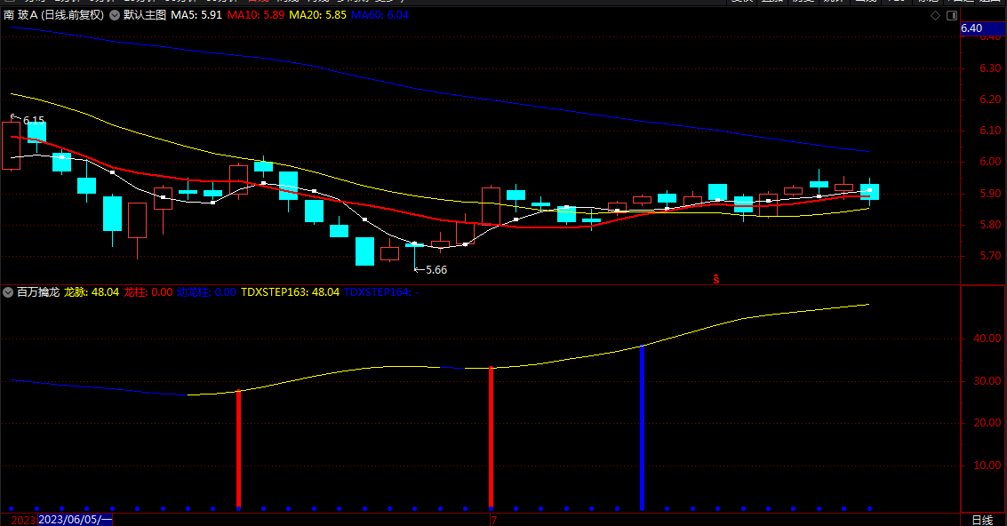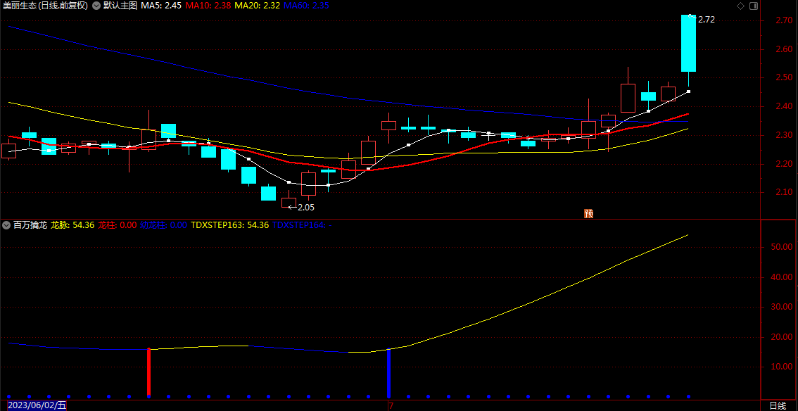 龙柱:IF(A5+A6>0,1*龙脉,0),STICK,COLORRED,LINETHICK5;