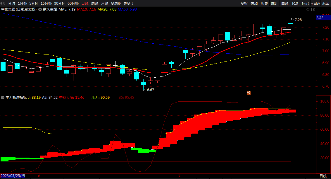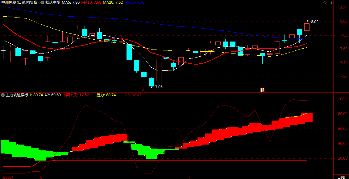 (主力轨迹线 通达信红涨绿跌波段顶底买卖指标公式 副图 源码)