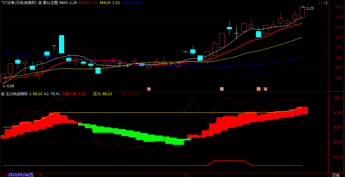 主力轨迹线 通达信红涨绿跌波段顶底买卖指标公式 副图 源码