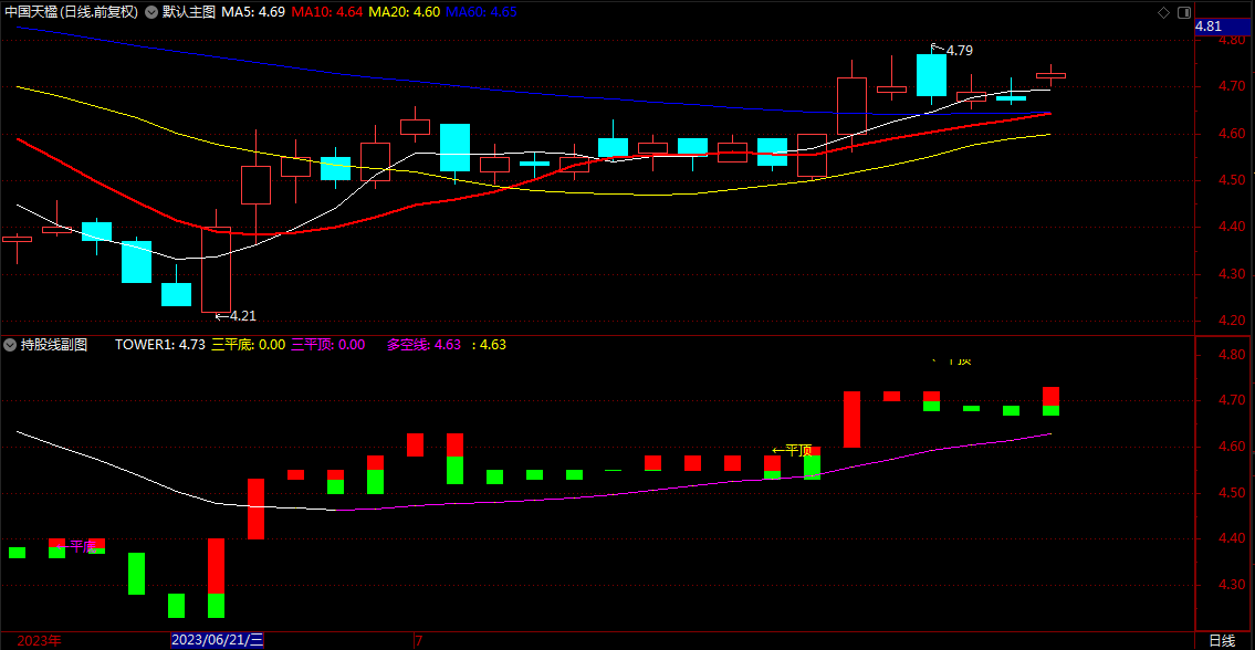 三平底:COUNT(TOWER2=REF(TOWER2,1),2)=2 AND VAR19,NODRAW;