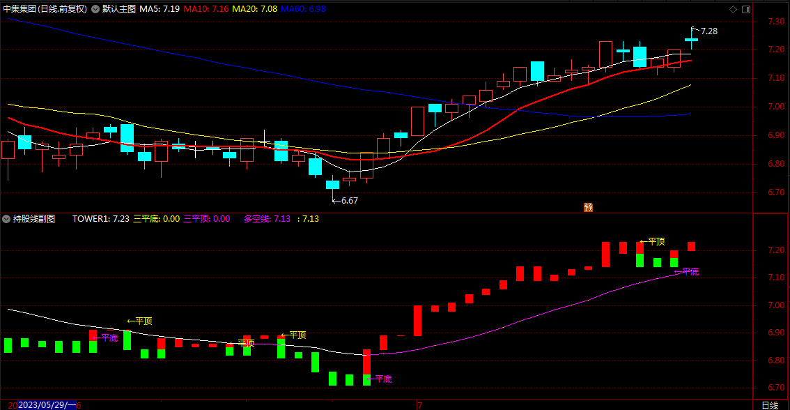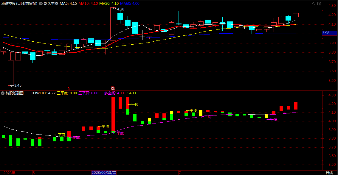 三平顶:COUNT(TOWER1=REF(TOWER1,1),2)=2 AND VAR1A,NODRAW;