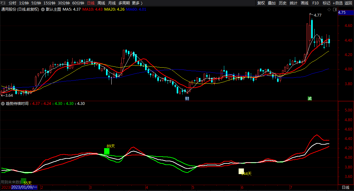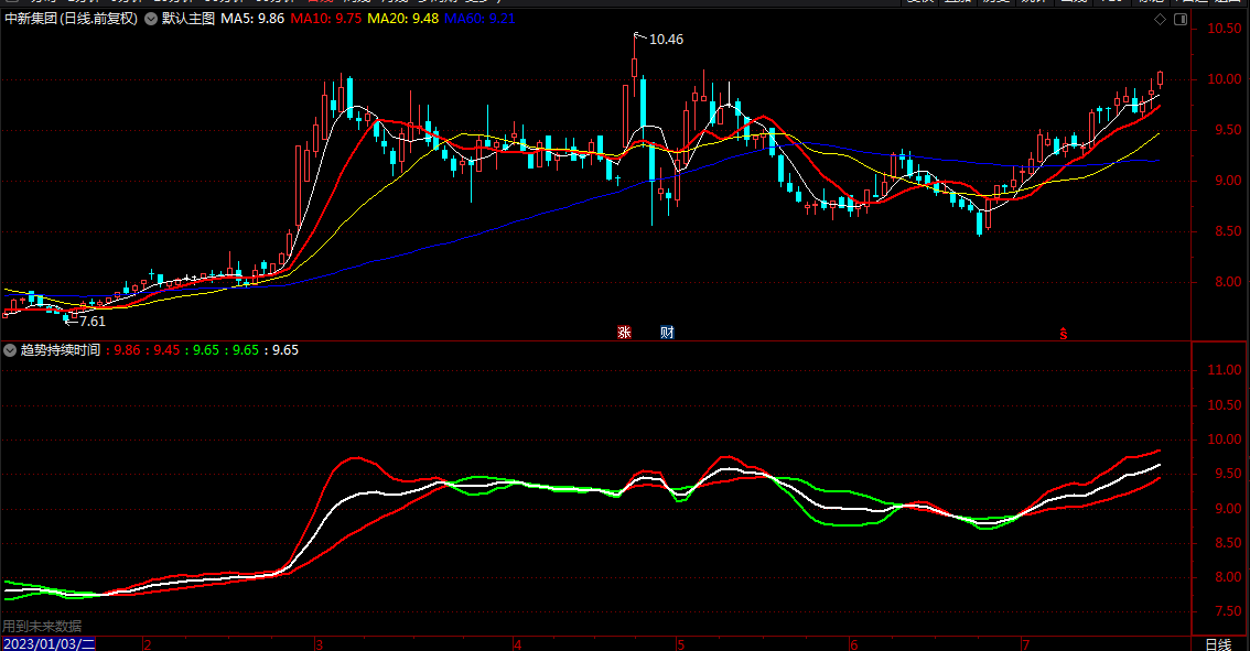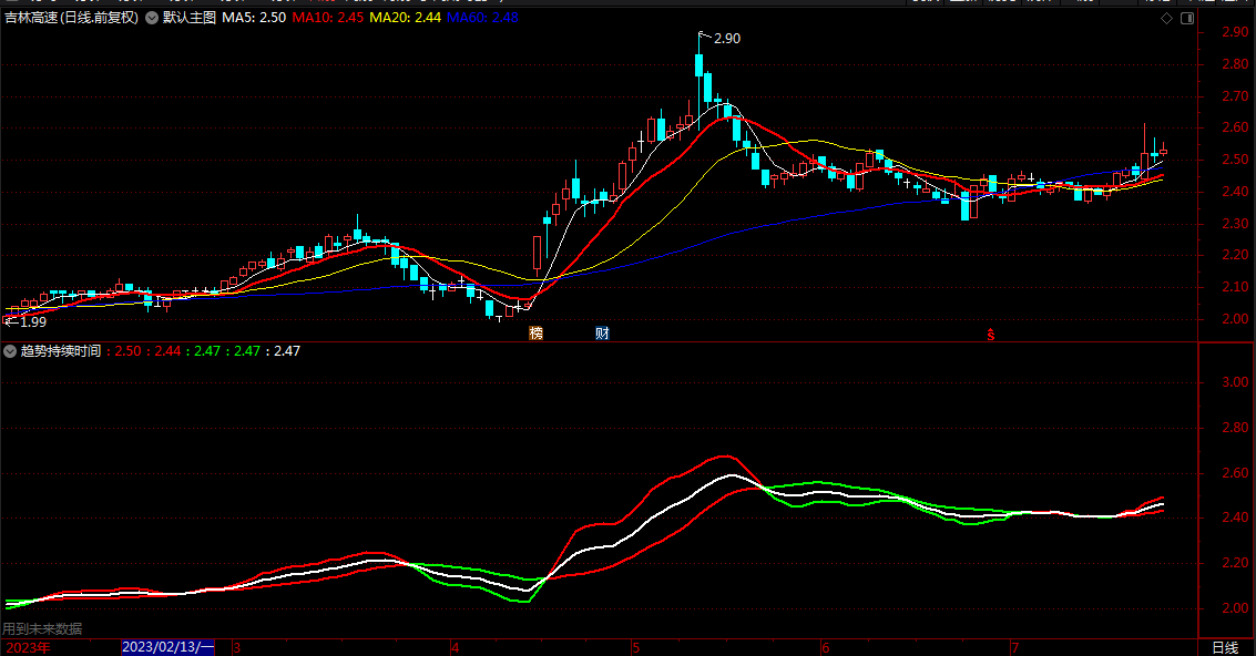 趋势持续时间提示 通达信趋势线中长线指标公式副图 源码