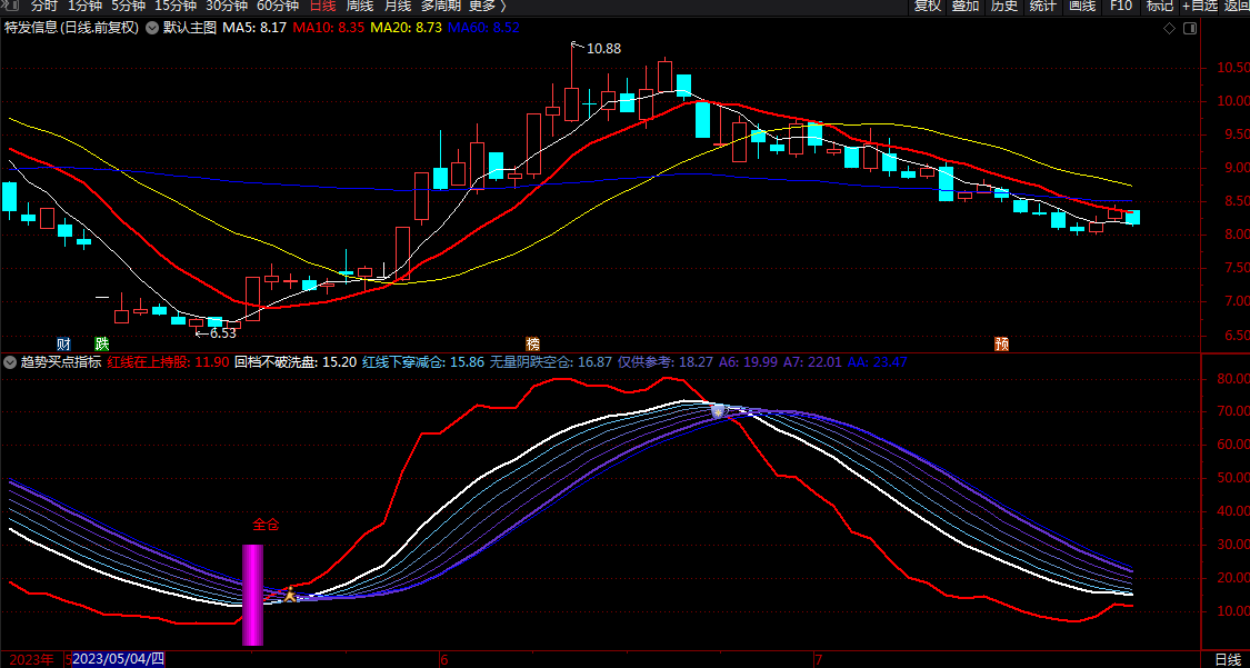 通达信超爽全仓买入指标公式 抄底追踪极佳指标 副图 源码