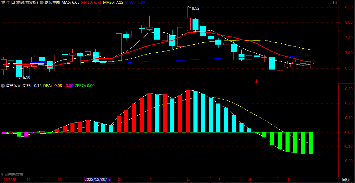 A10:=A5 AND A7<A3 AND A4 AND A8>REF(A8,A7) AND A9<REF(A9,A7) AND MACD>0;