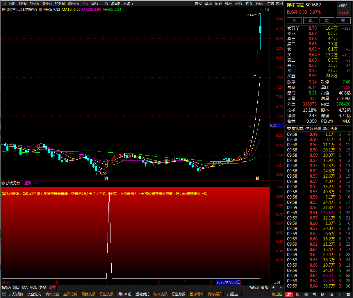 注意:不要选st股、一字板股和放巨量的股票。主力在向上突破时,都会筑平台,当主力超越平台时,会解放前面所有压力位,最简单的方式就是直接拉涨停,限制散户跟风。在实际使用中,希望你能够发现更多的妙用之处。