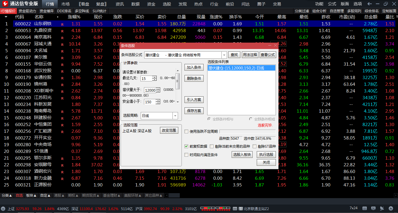 (主力潜伏建仓选股指标 通达信专门在底部建仓所用公式 无未来 无源码 )