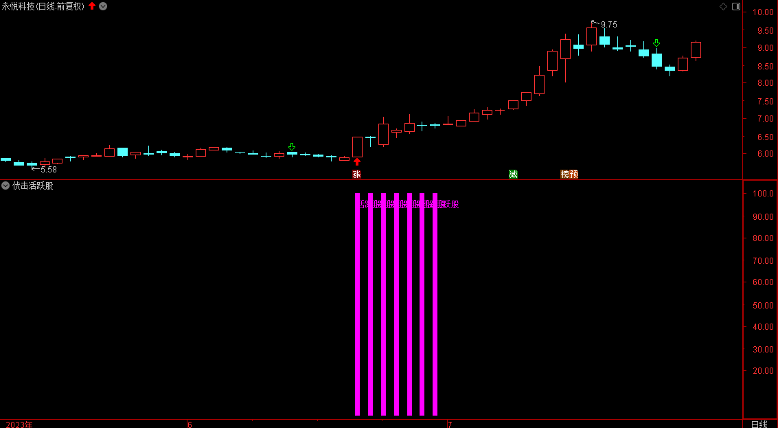 (金典通达信伏击活跃股选股副图,股市长红!)