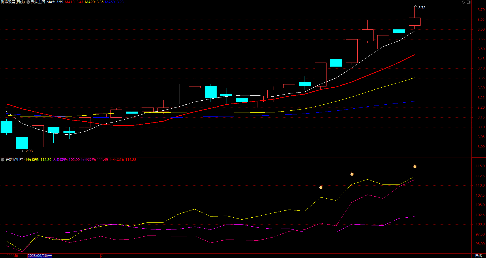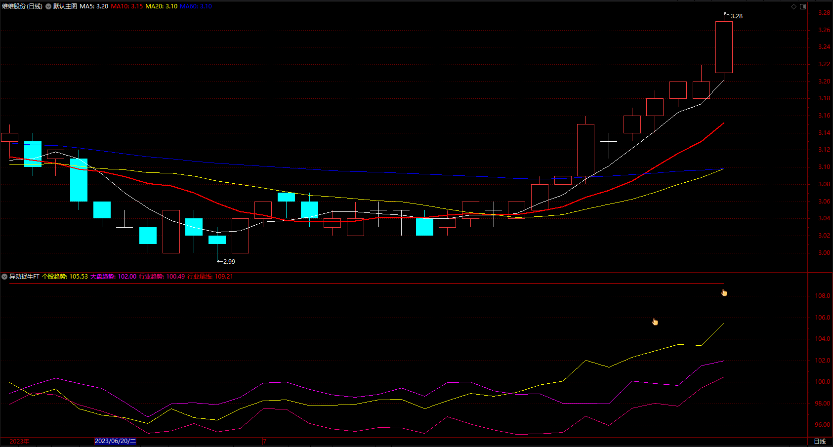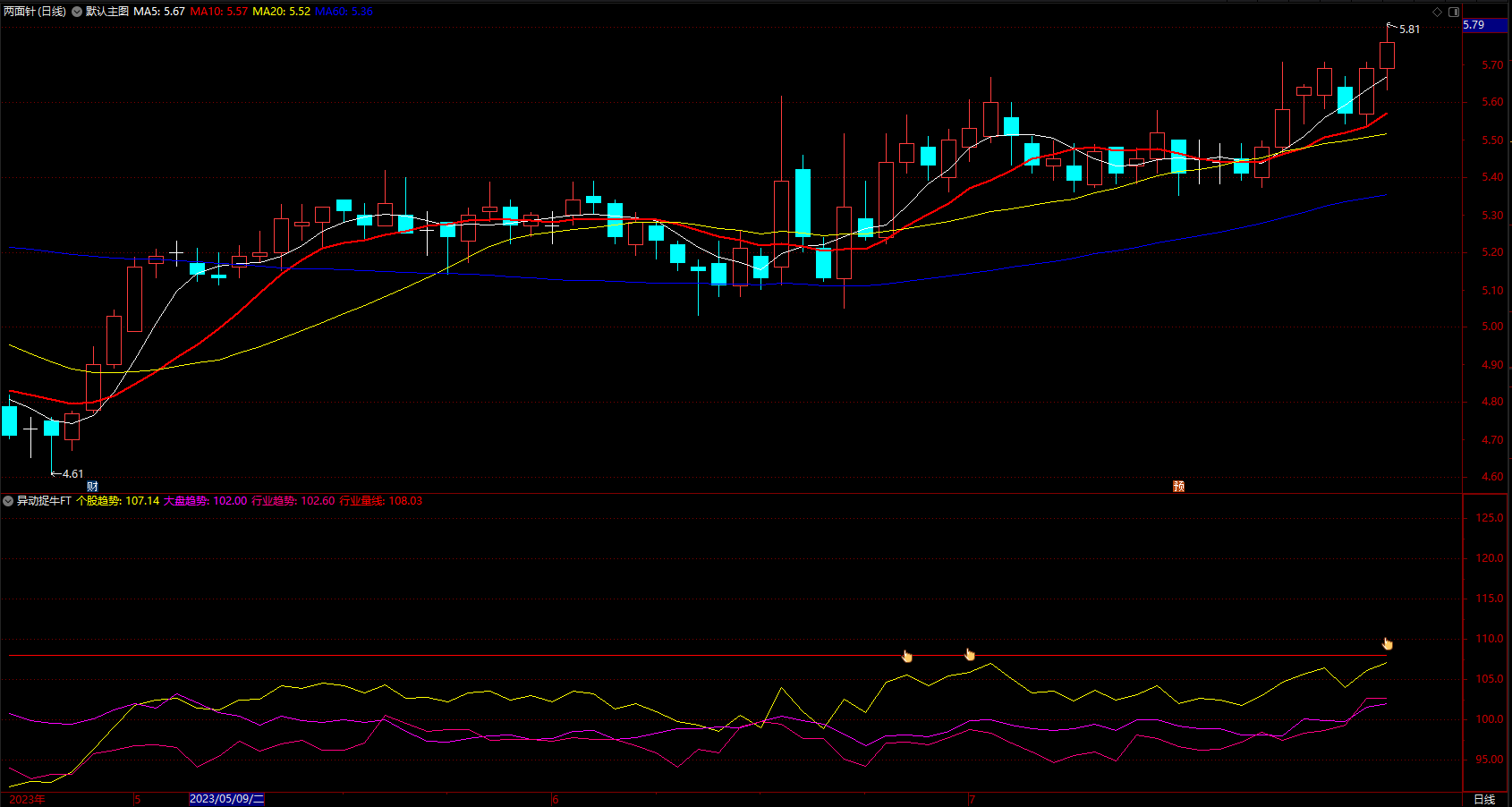 个股趋势黄色线上穿买入