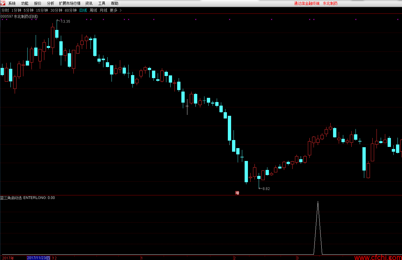 筹码穿越顶底,本人原创,在某指标网被评为精华指标,可以用于任何周期,做分时指标也极其有用,本人自用的之一