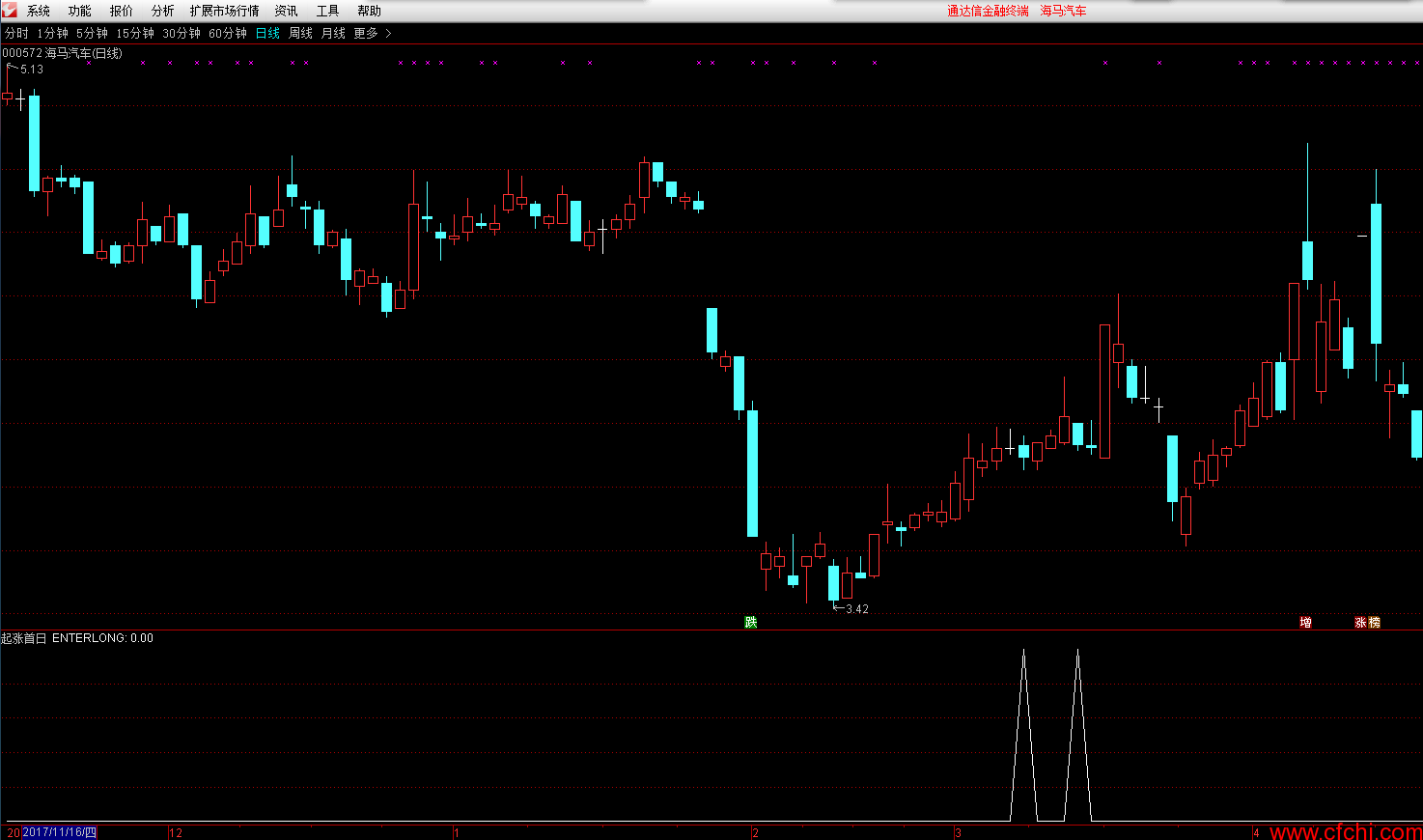筹码穿越顶底,本人原创,在某指标网被评为精华指标,可以用于任何周期,做分时指标也极其有用,本人自用的之一
