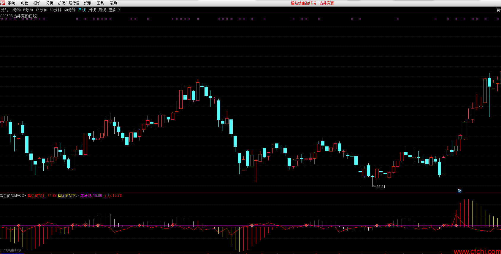 筹码穿越顶底,本人原创,在某指标网被评为精华指标,可以用于任何周期,做分时指标也极其有用,本人自用的之一