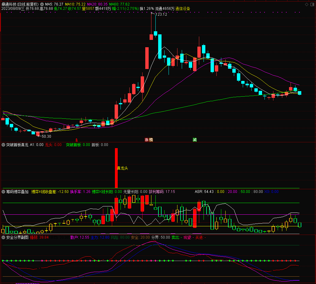 (【通达信】安全分界副图+筹码博弈叠加K线副图+突破首板真龙头副图选股指标,源码分享)