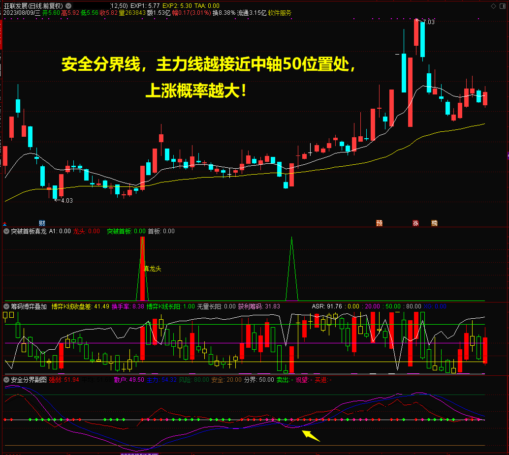 安全分界线,主力线越接近中轴50位置处,上涨概率越大!