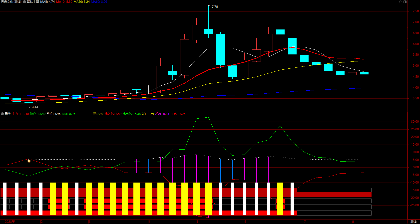 STICKLINE(月MD>=月MA AND KX>=DHX AND 周MD>=周MA AND DIFK>=DEAK AND 周XK>=周XD AND 月XK>=月XD,-31,-10,2,0),COLOR00FFFF;