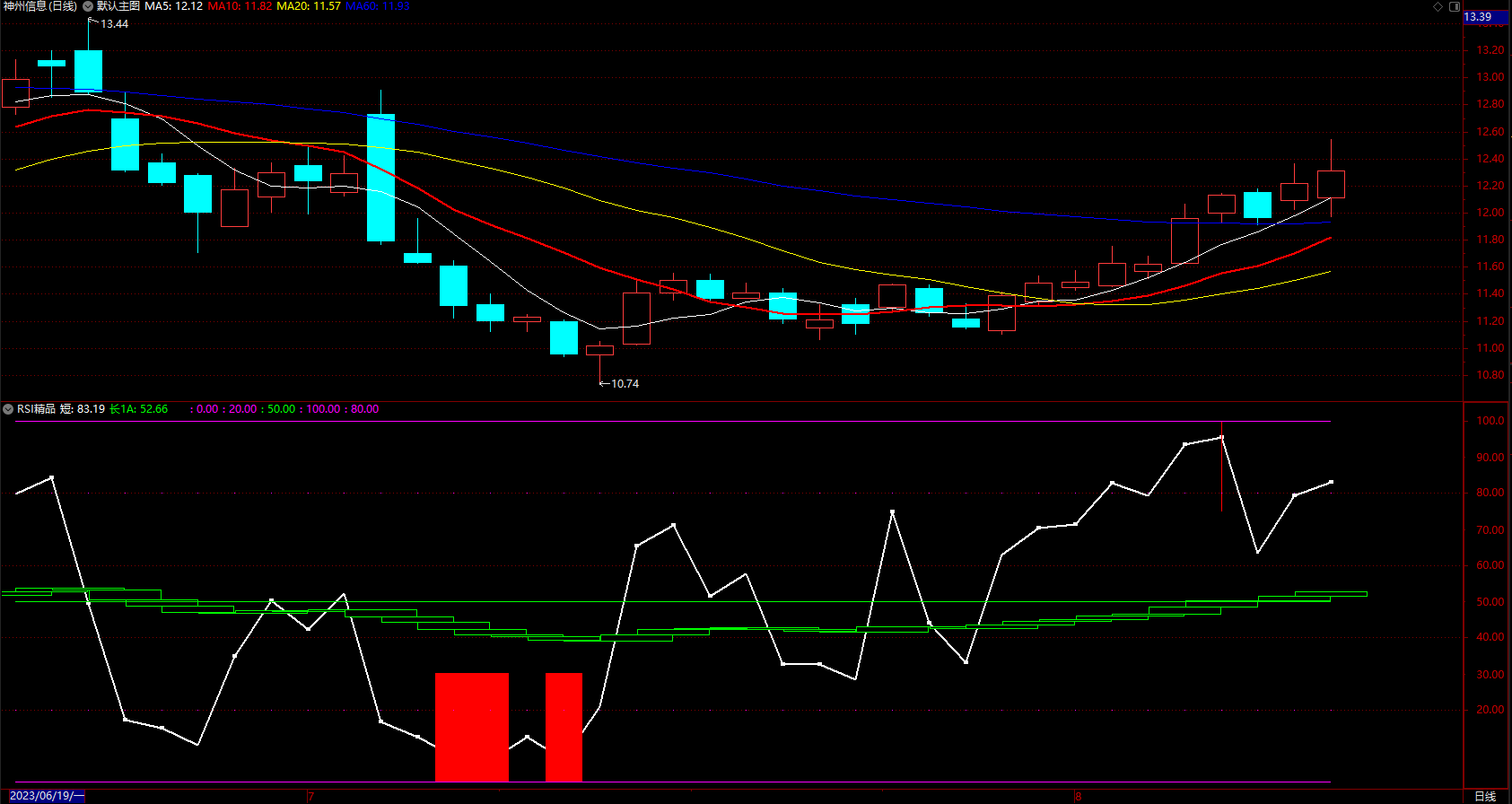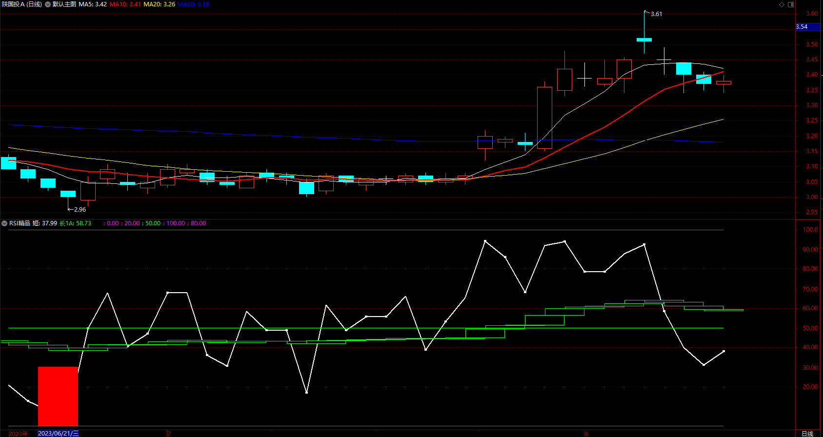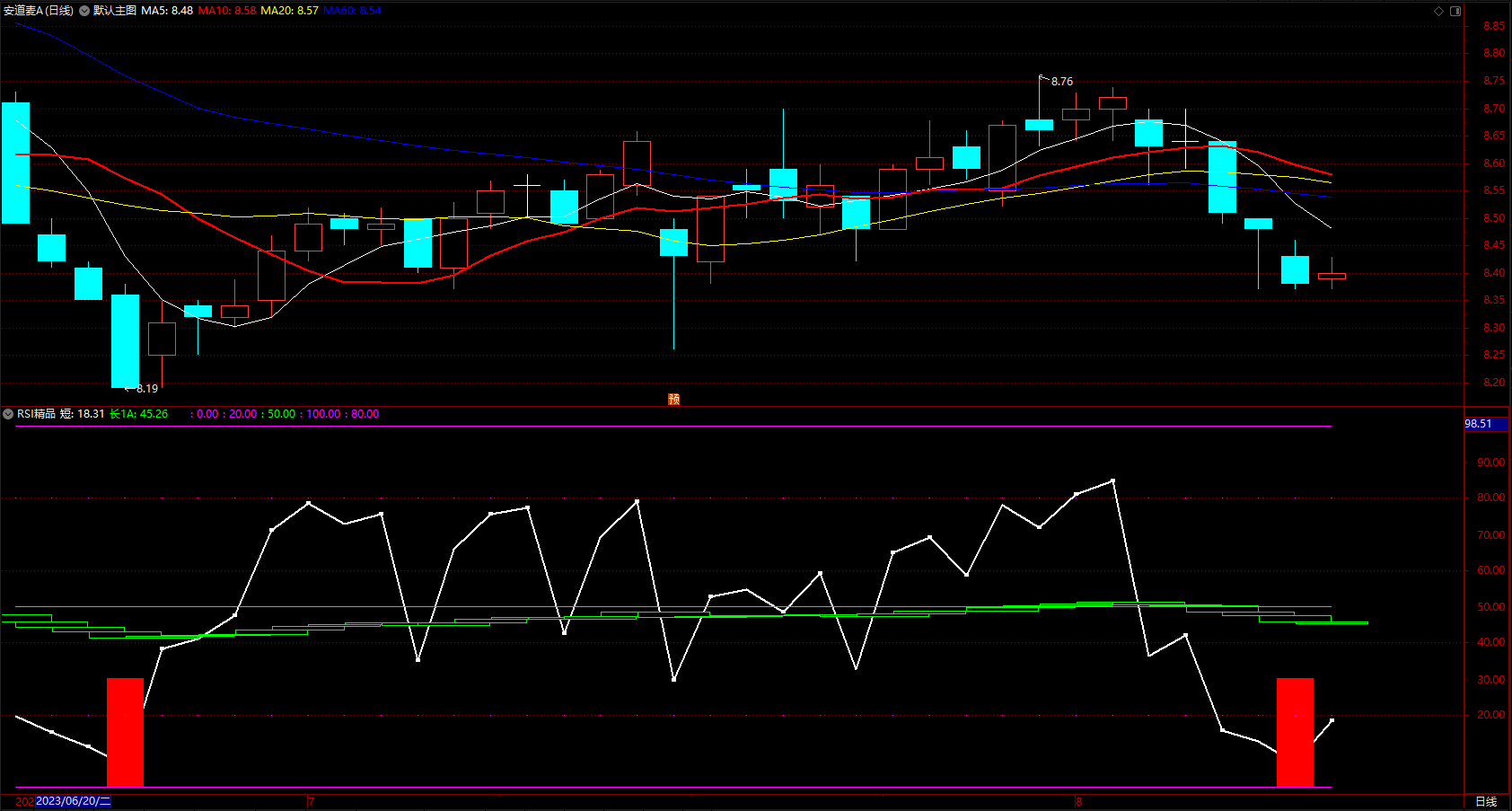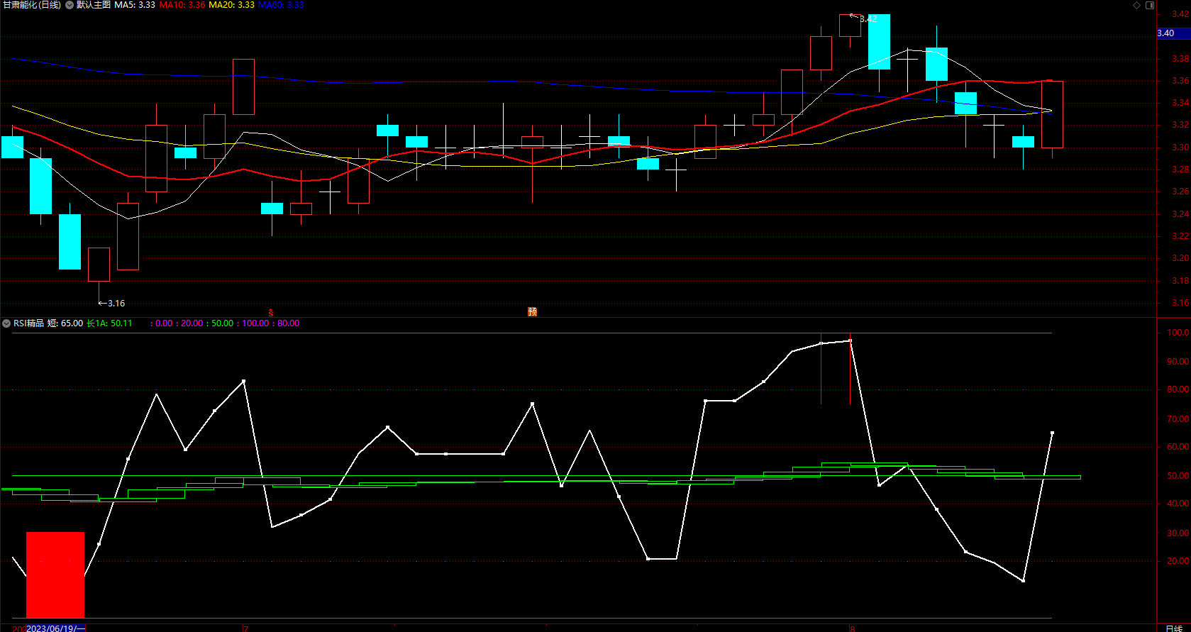 红柱预示上涨,白线下方考虑买入,白线上方考虑卖出。