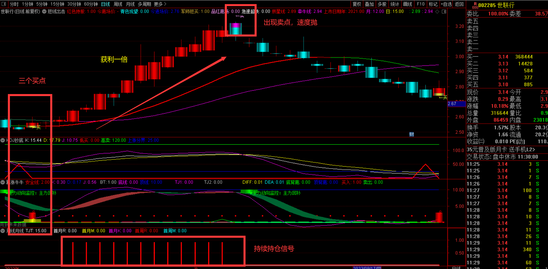 精华版:分时主力吸筹:增加了买入点提示,效果不错。手机电脑都可用。