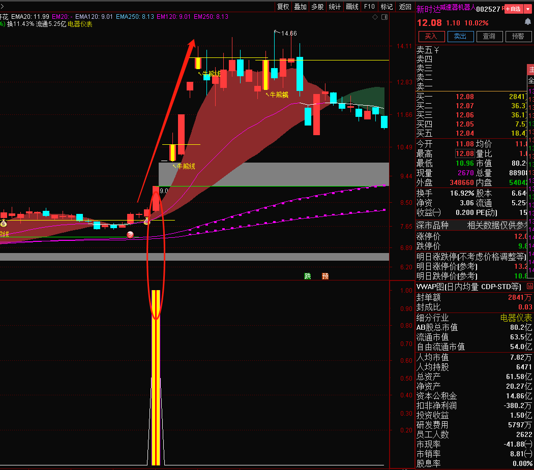 通达信〖AI量化分时〗主副图分时指标,捕捉股票在分时图上的强势启动信号,源码