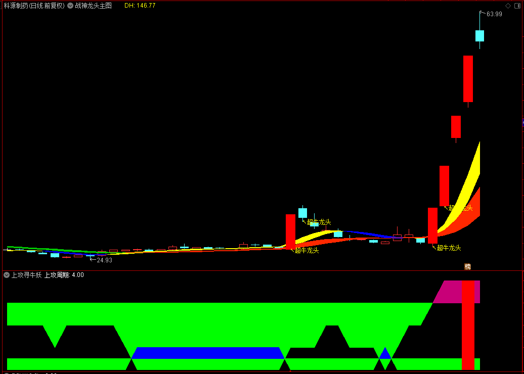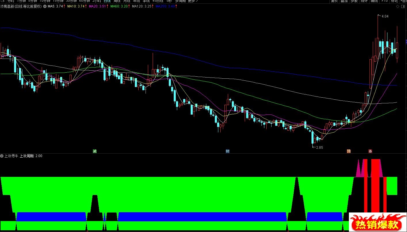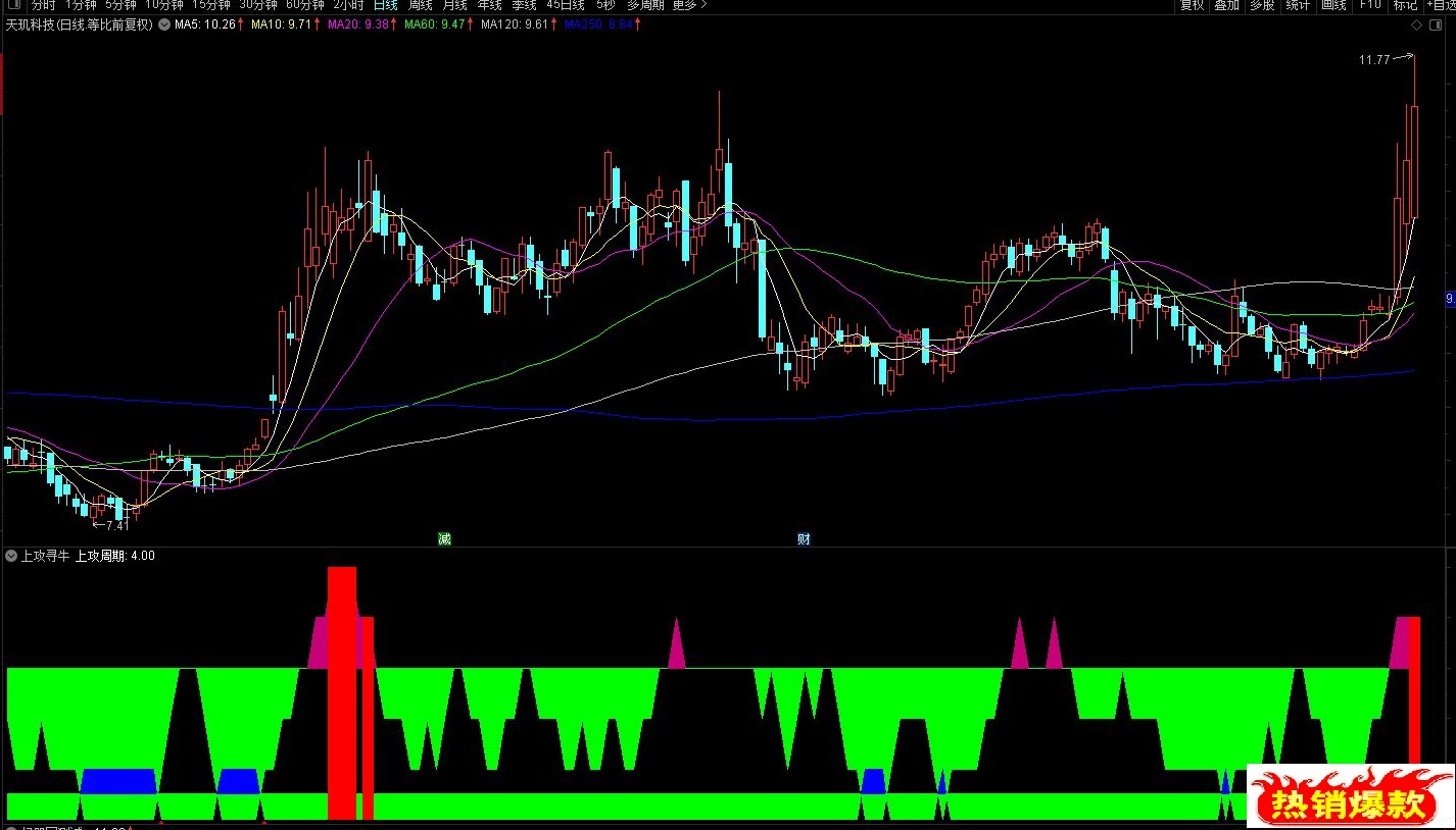 (【上攻寻牛妖】通达信上攻寻牛妖副图指标,红柱后回调见底入场,源码分享)