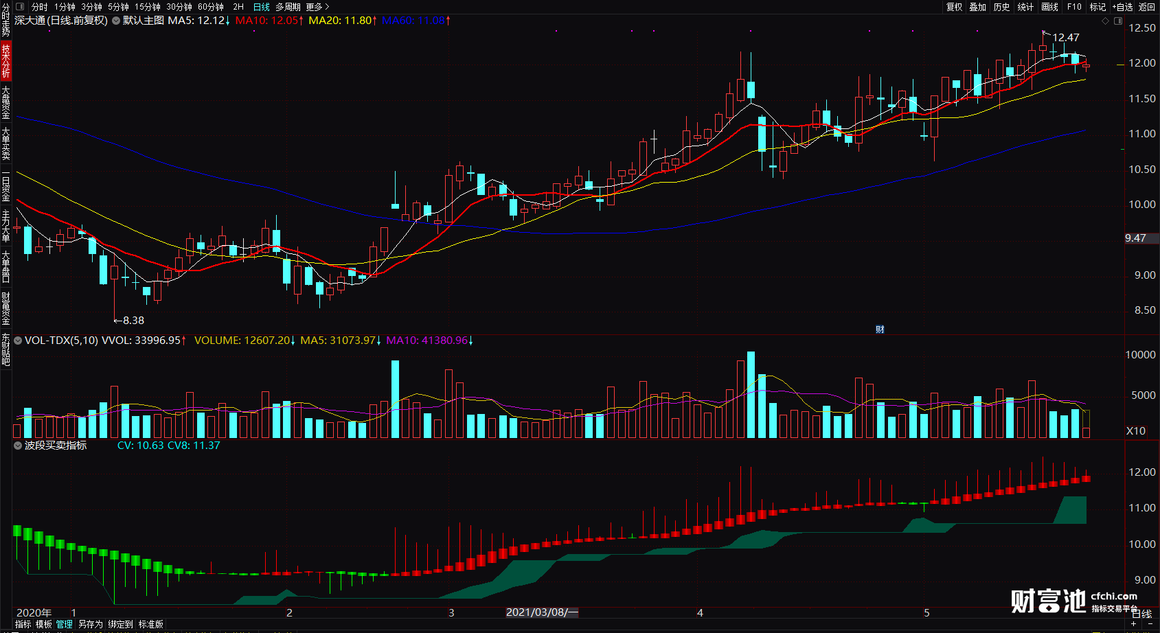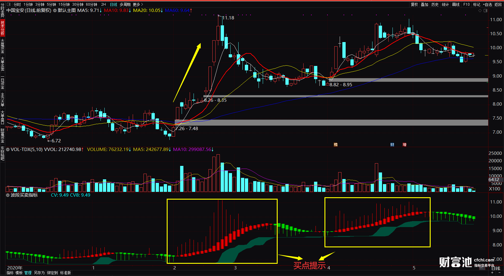 (看得见的趋势信号 助你抓波段牛 通达信波段买卖指标公式源码 副图)