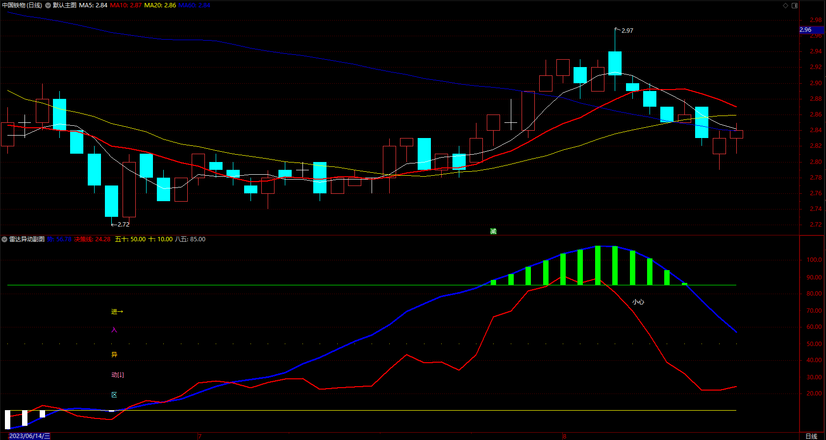 (主力异动指标 通达信关注进入异动区随时可能反弹的指标 副图 无未来 源码 )