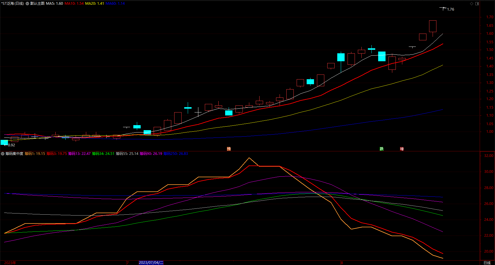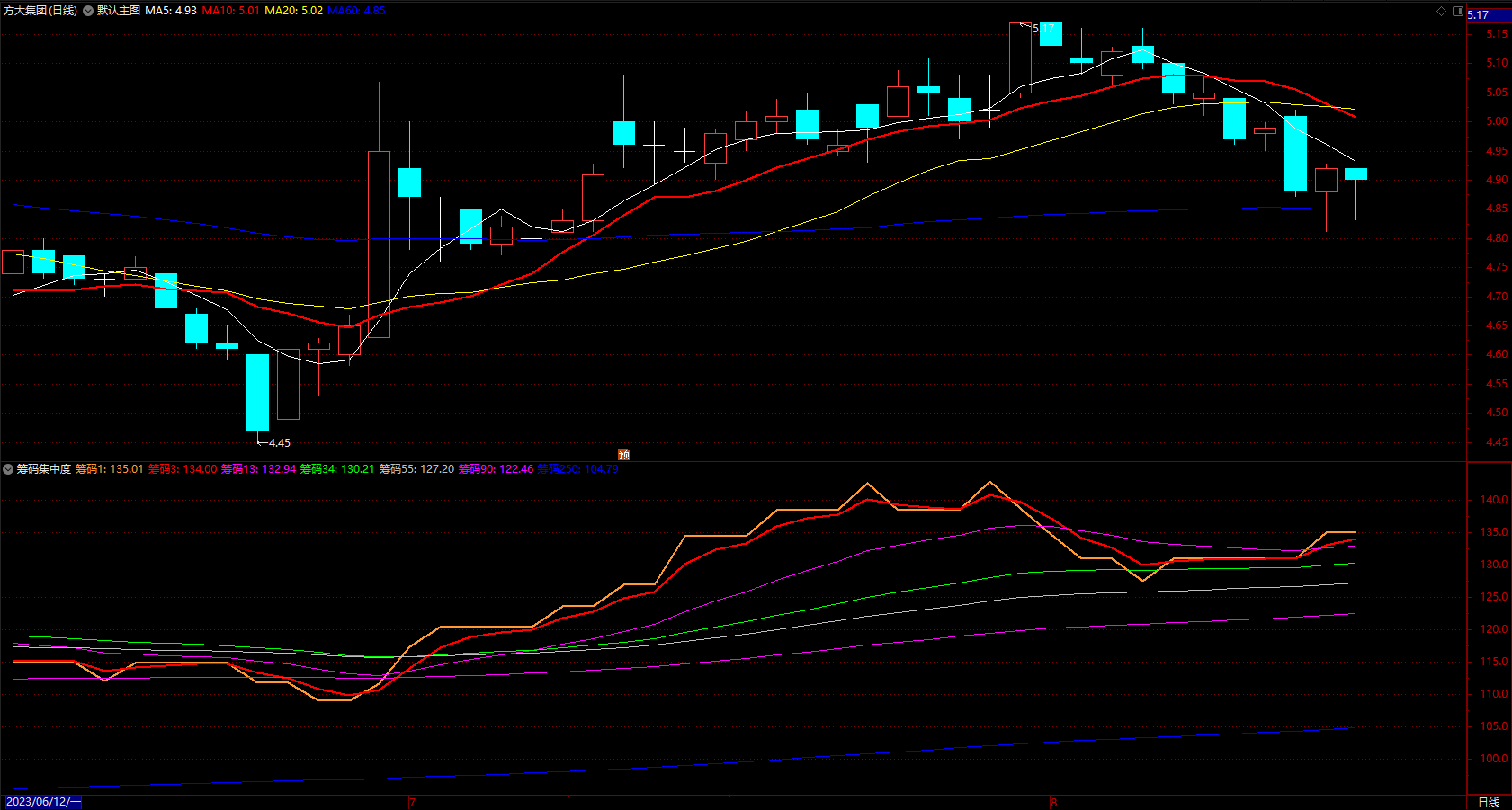 筹码集中度 通达信趋势线波段顶底指标公式 副图 源码