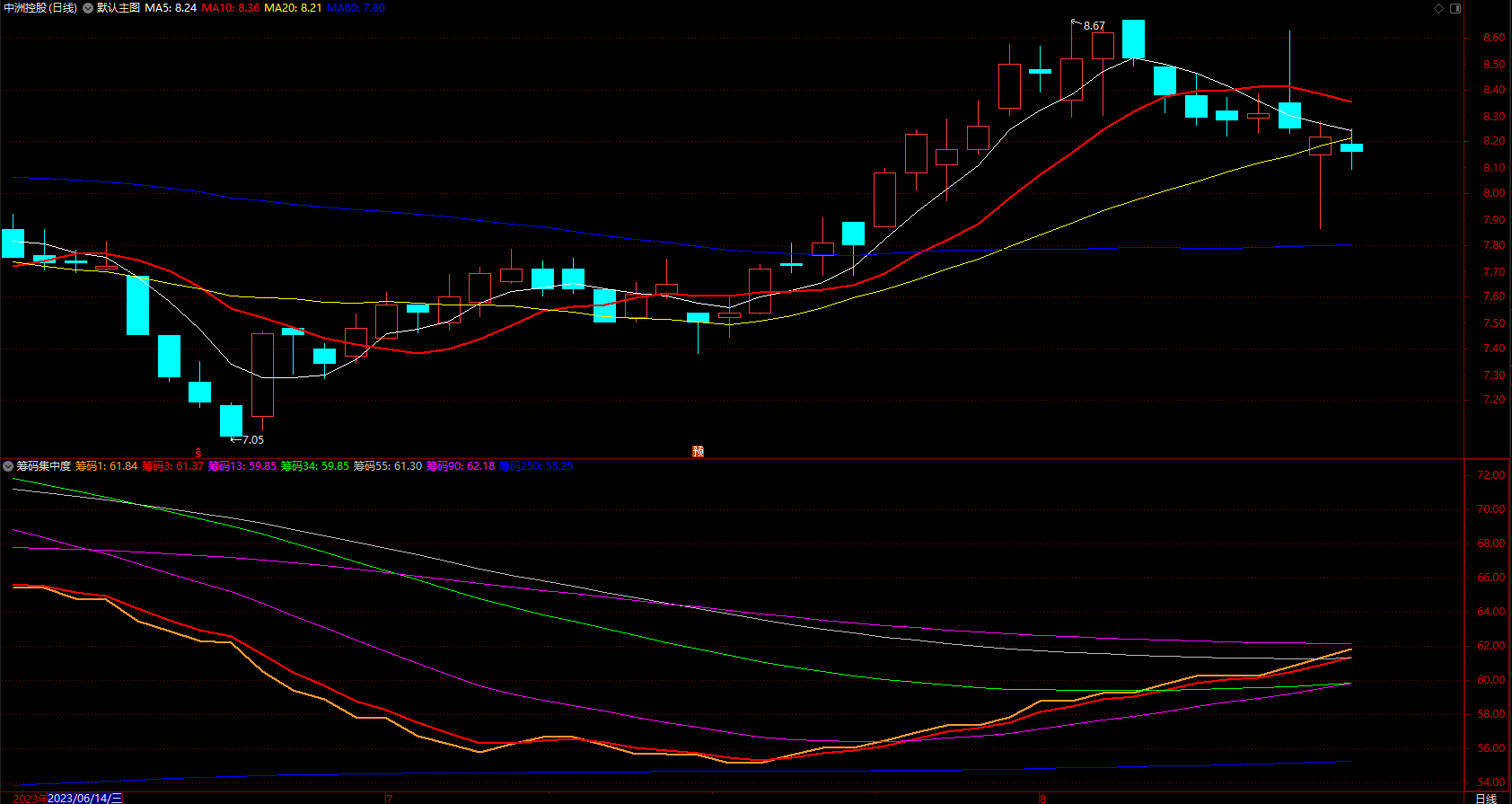 (筹码集中度 通达信趋势线波段顶底指标公式 副图 源码)