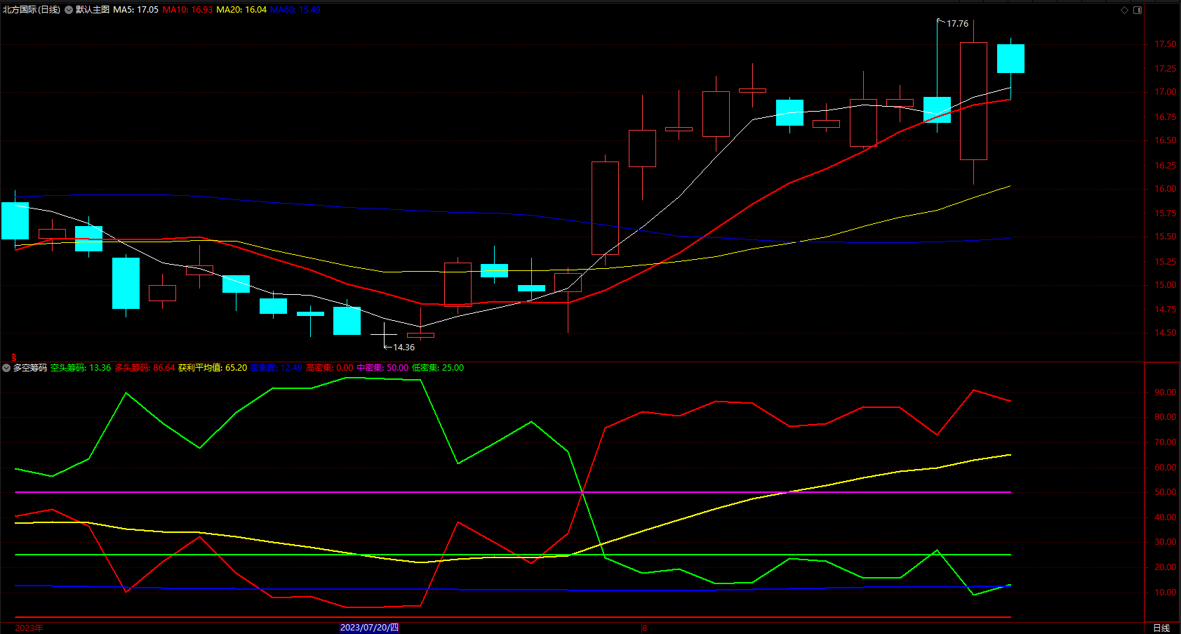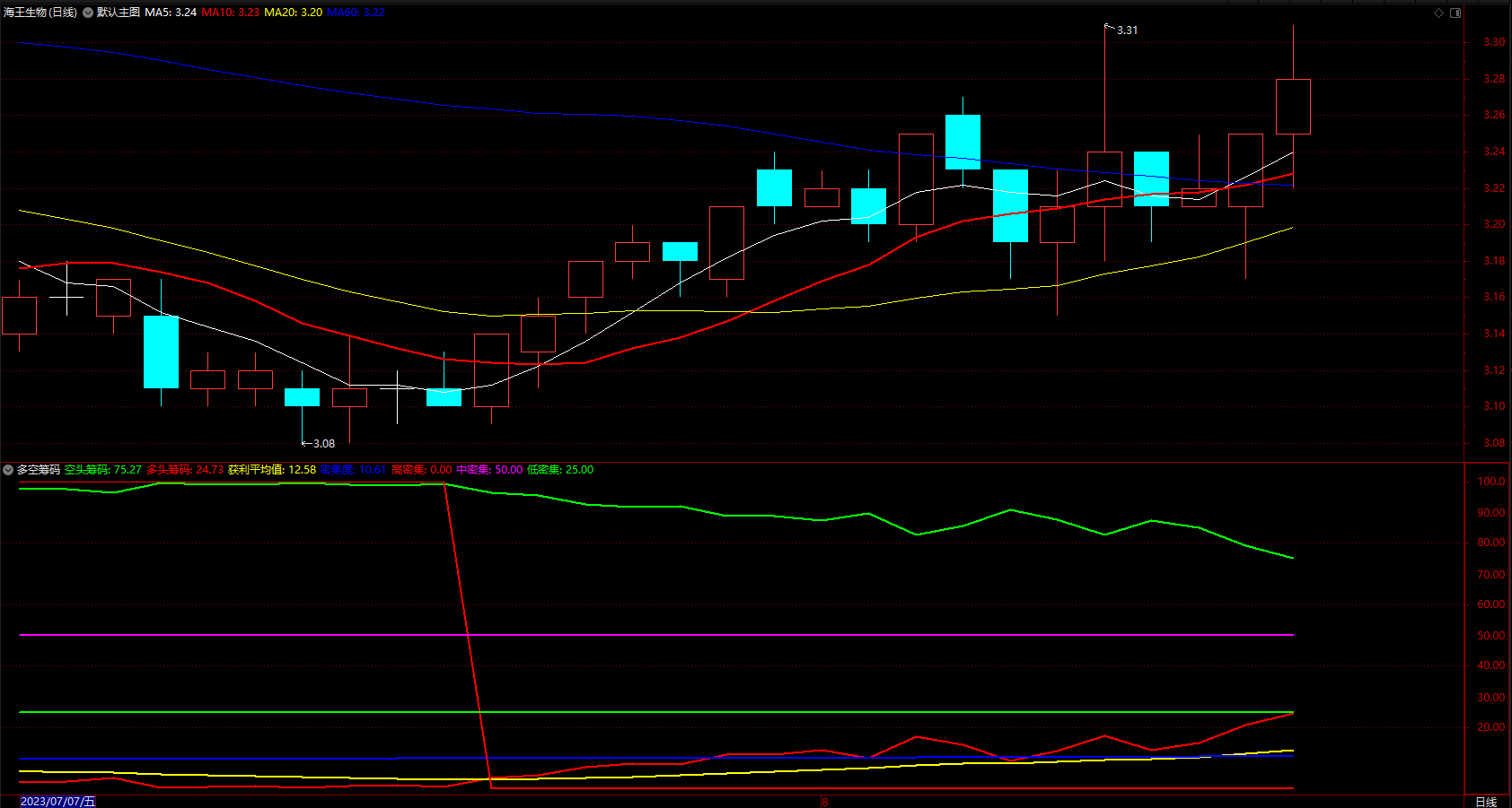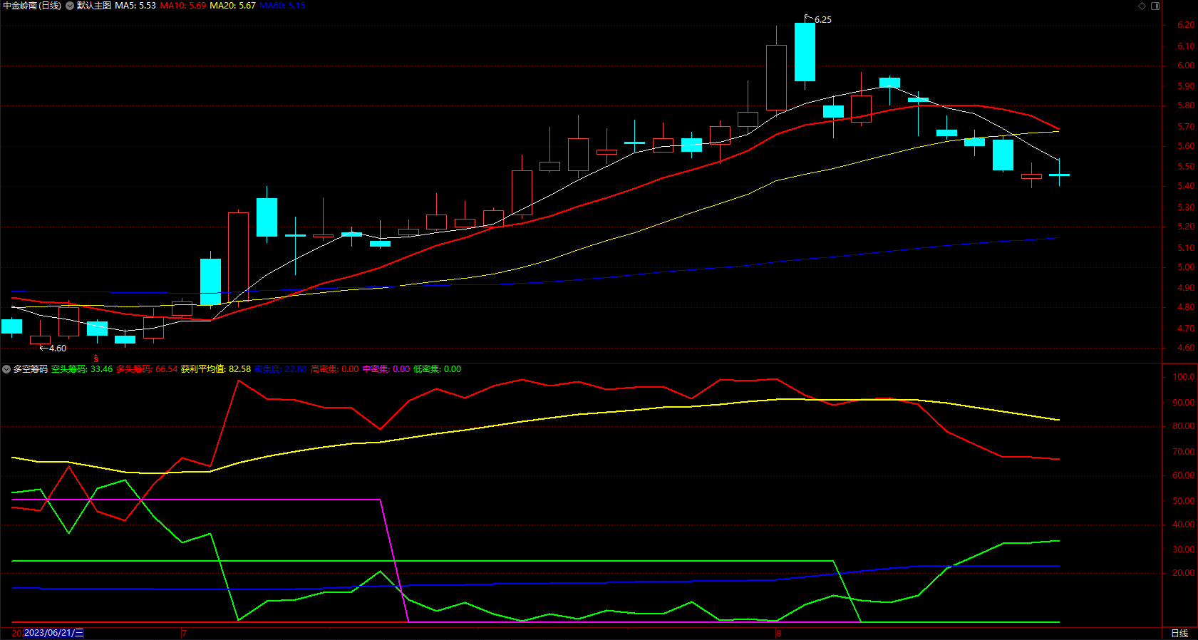 获利多空筹码 通达信趋势线提示强弱指标公式 副图 源码
