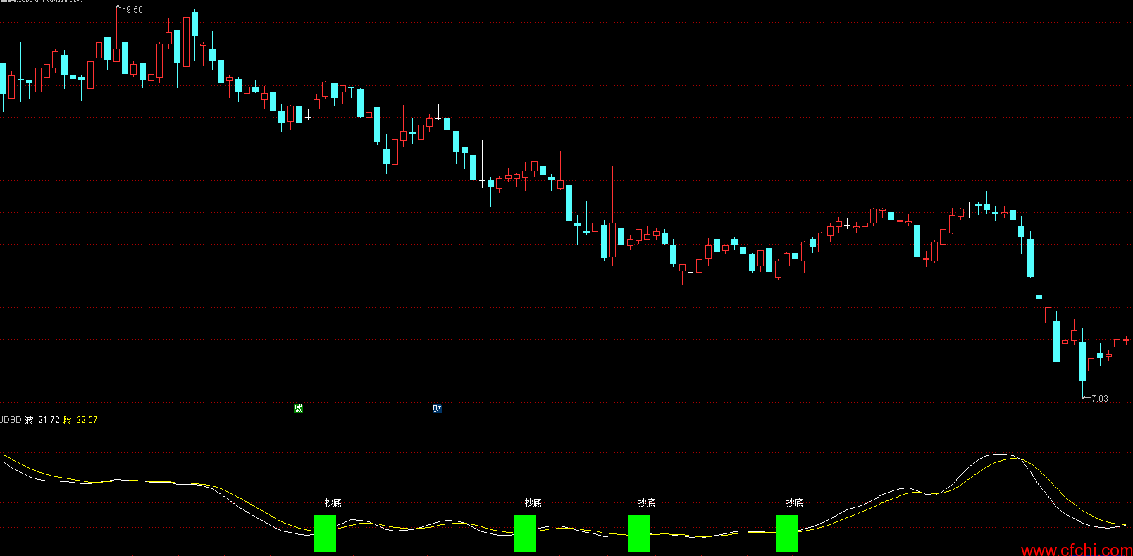 筹码穿越顶底,本人原创,在某指标网被评为精华指标,可以用于任何周期,做分时指标也极其有用,本人自用的之一