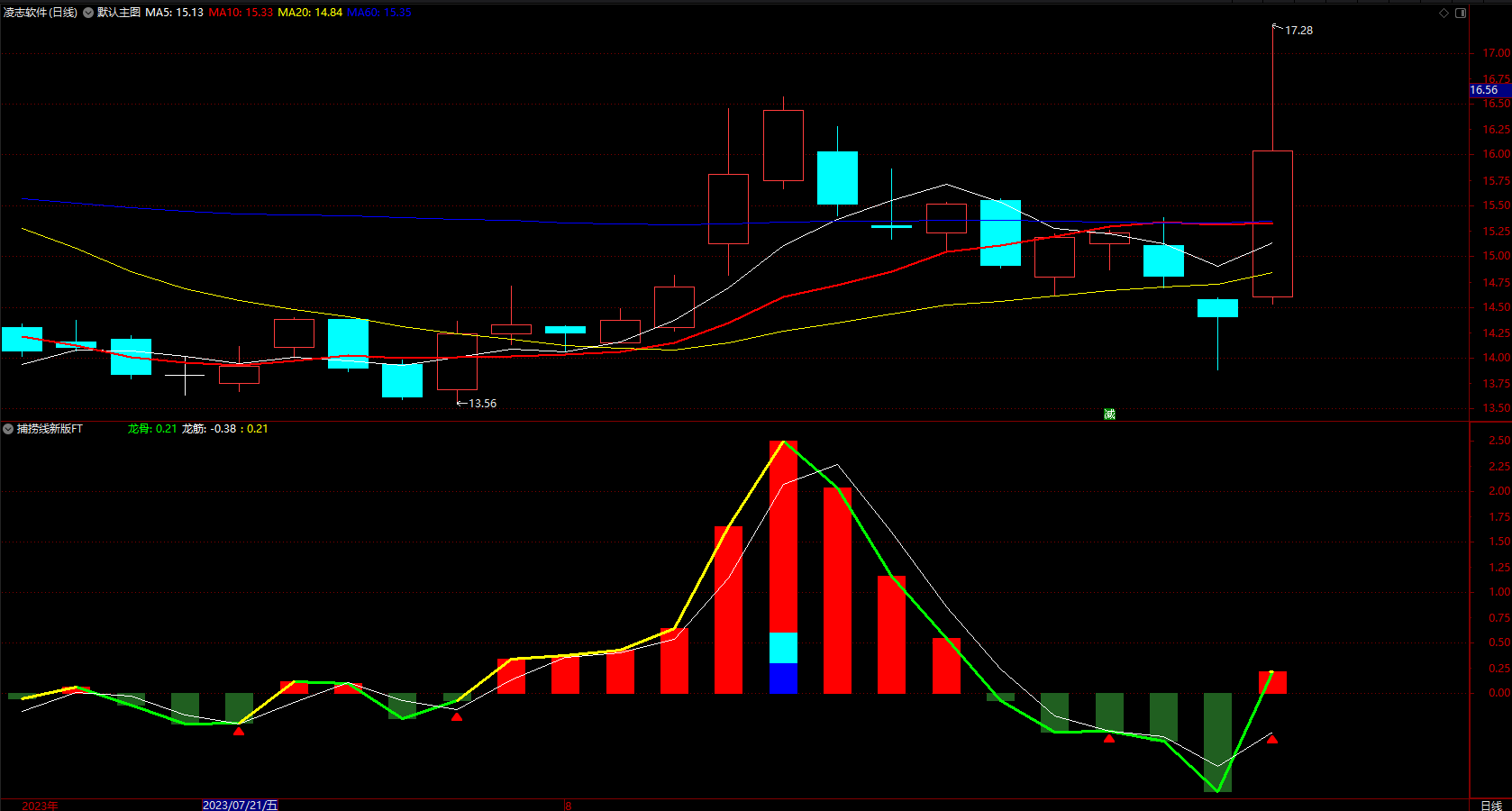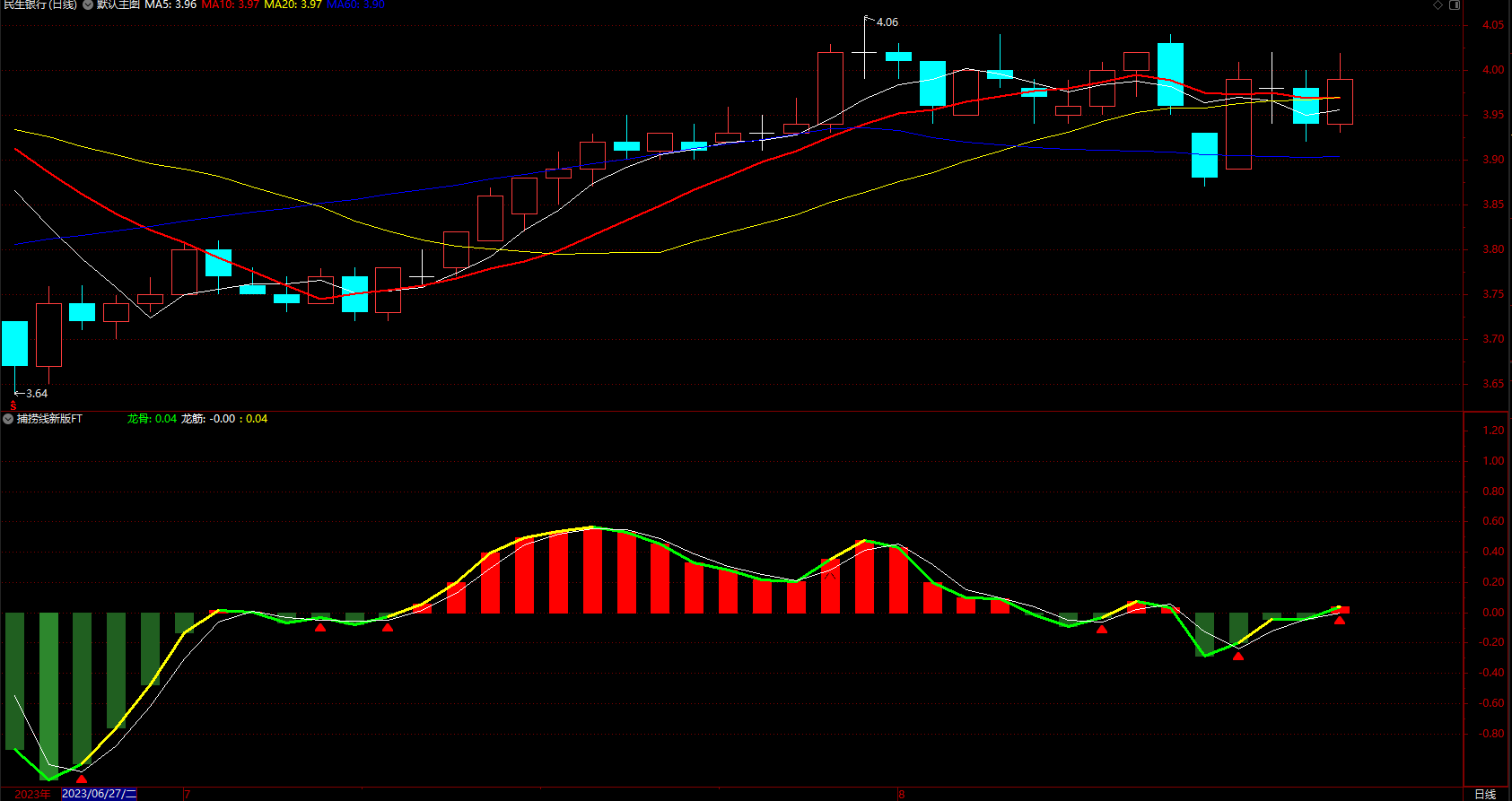 4. 若股价处于智能辅助线下方时,不建议使用捕捞金叉买入该股。
