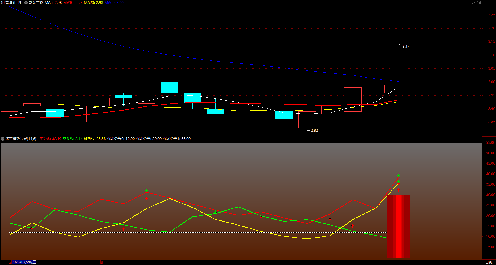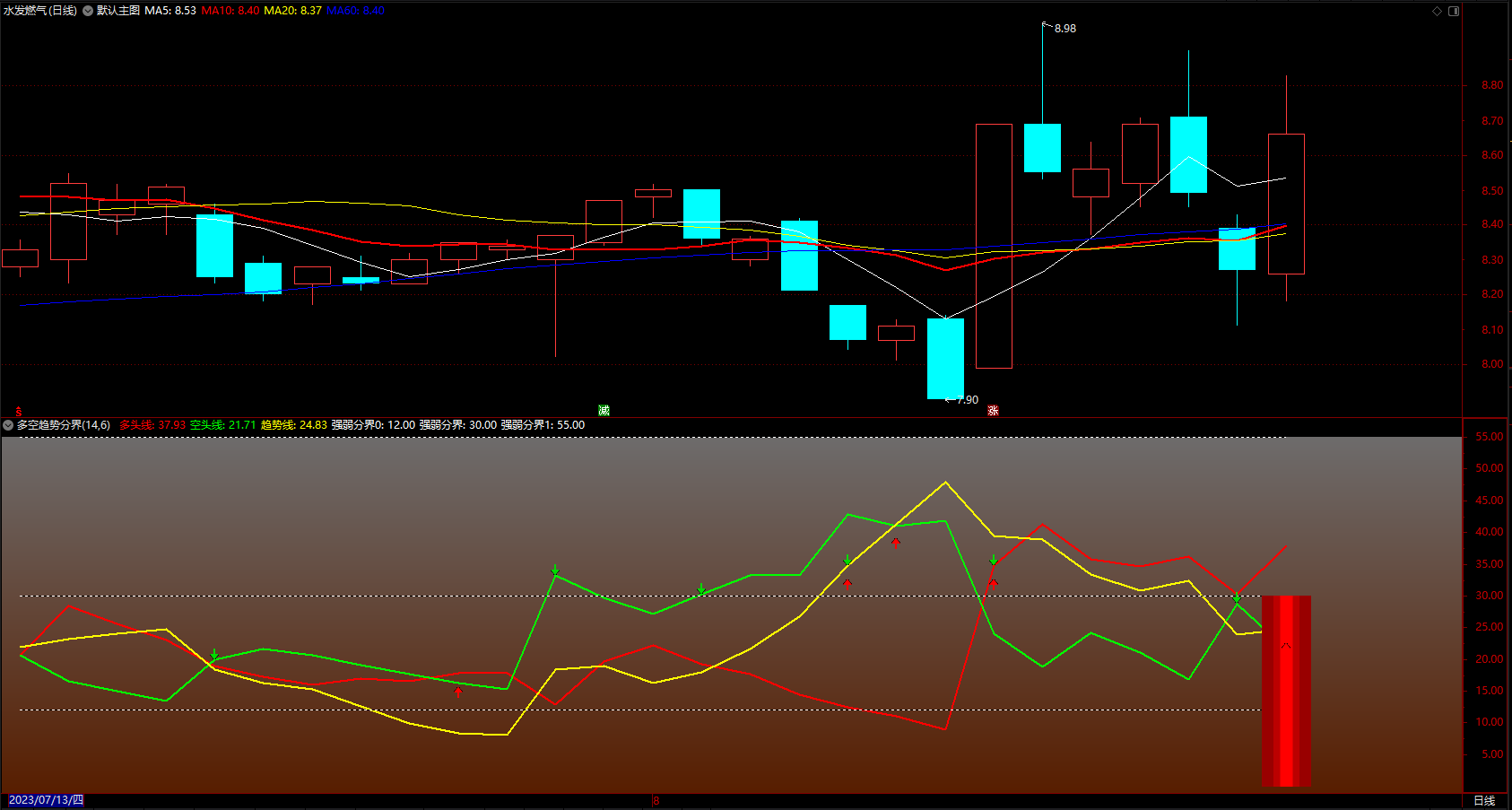 多空趋势线 红色柱关注 红色箭头买入 绿色箭头卖出