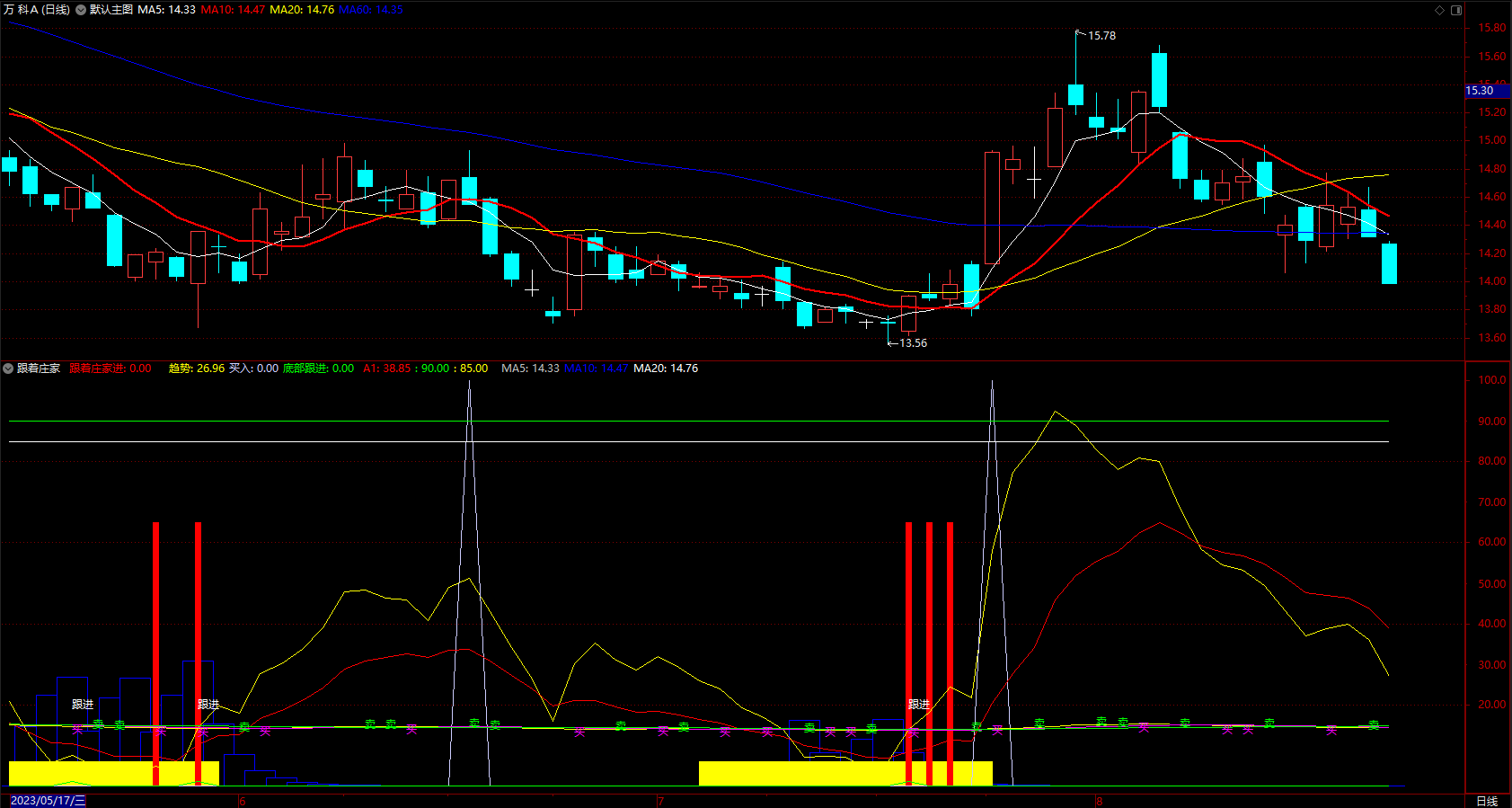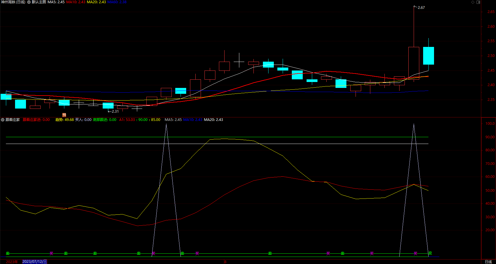 跟着庄家进:IF(大A,1,0),COLORRED;