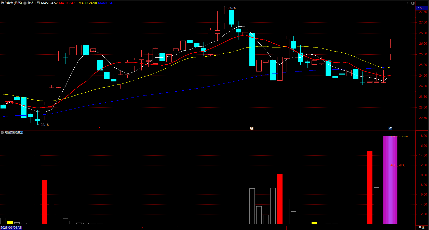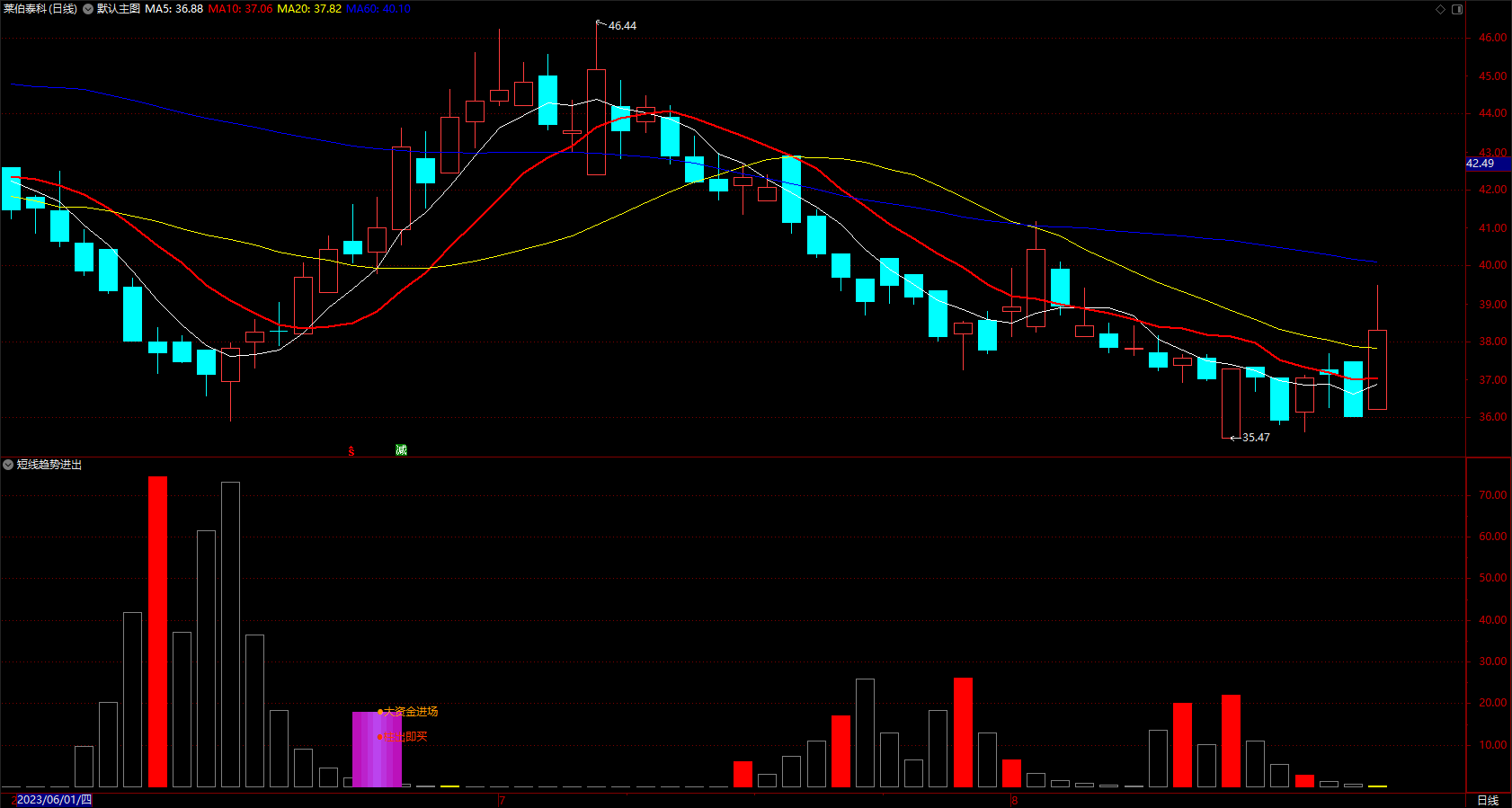 波段利器长短线公式 通达信大资金进场出货提示指标 副图 源码