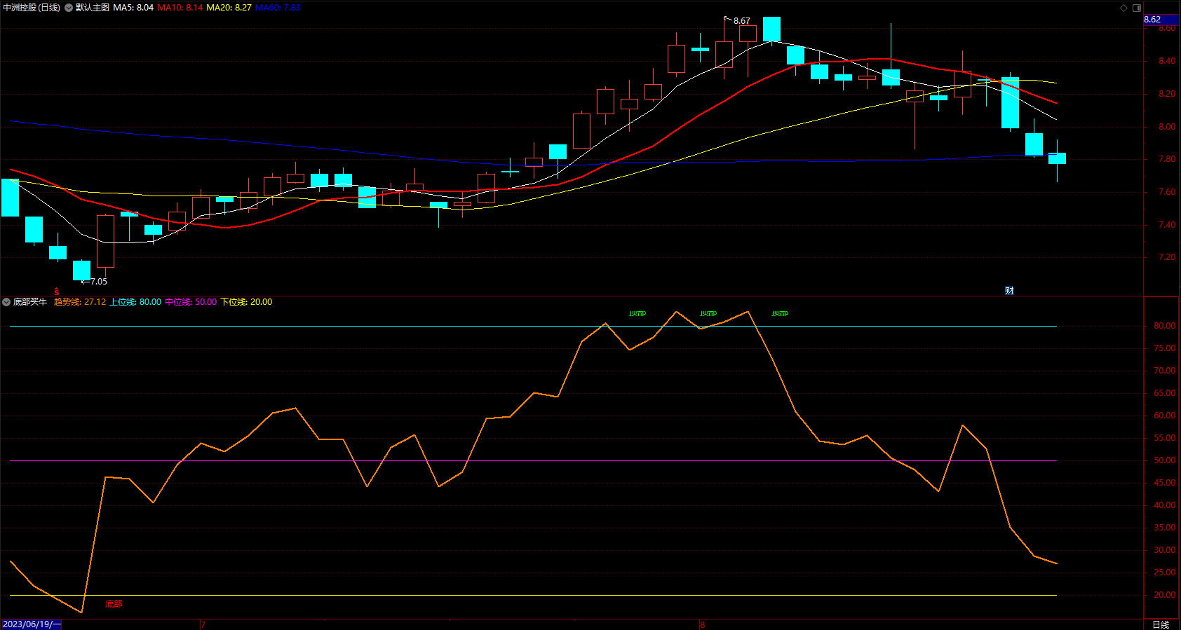 (通达信底部预测指标公式 中短趋势线 副图 无未来函数 源码 )